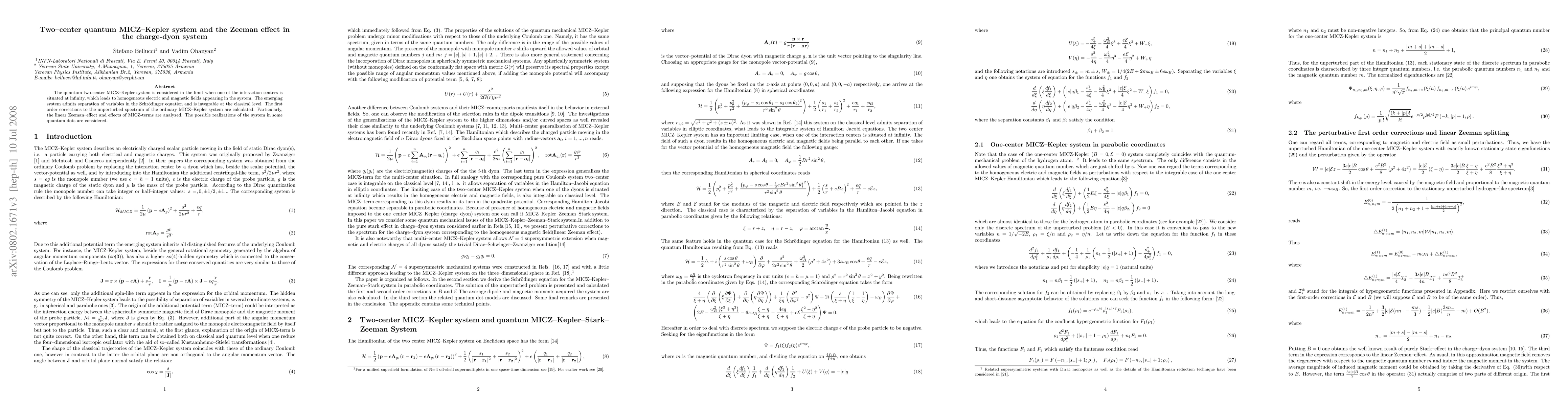 This paper investigates the quantum two-center MICZ-Kepler system under conditions where one interaction center is at infinity, resulting in homogeneous electric and magnetic fields. It focuses on first-order corrections to the unperturbed spectrum, analyzing the linear Zeeman effect and MICZ-terms, and explores potential applications in quantum dots.