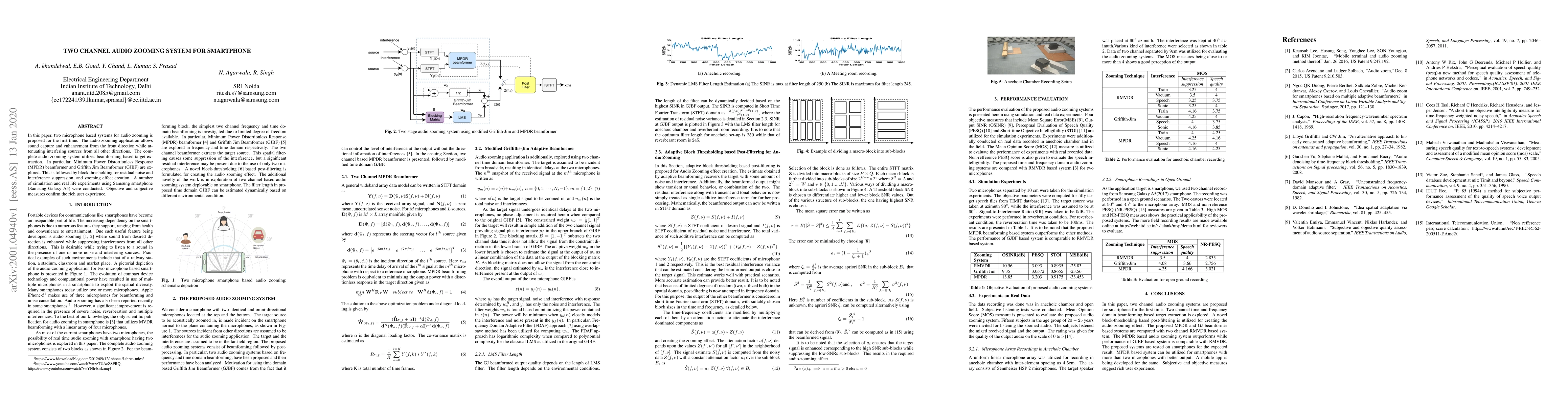 A new audio zooming system for smartphones using beamforming techniques is proposed, allowing users to capture clear sound while suppressing background noise.