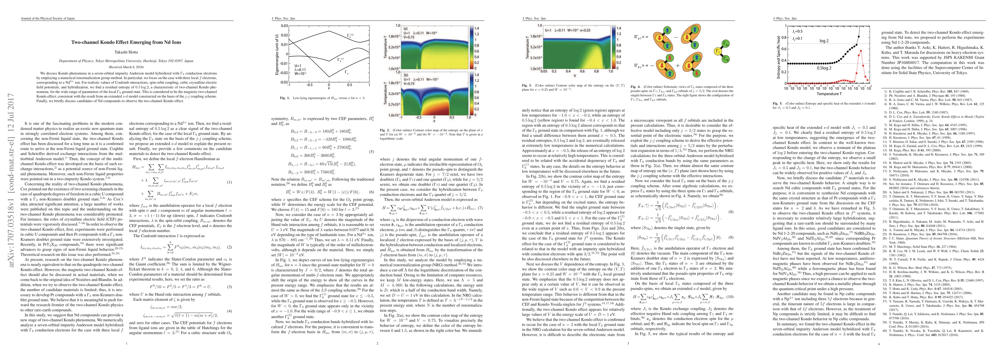 This study investigates the Kondo effect in a seven-orbital impurity Anderson model with Nd$^{3+}$ ions, revealing a residual entropy of $0.5\log 2$ indicative of a magnetic two-channel Kondo effect. The research employs a numerical renormalization group method to analyze realistic parameters and suggests potential Nd compounds for observing this phenomenon.