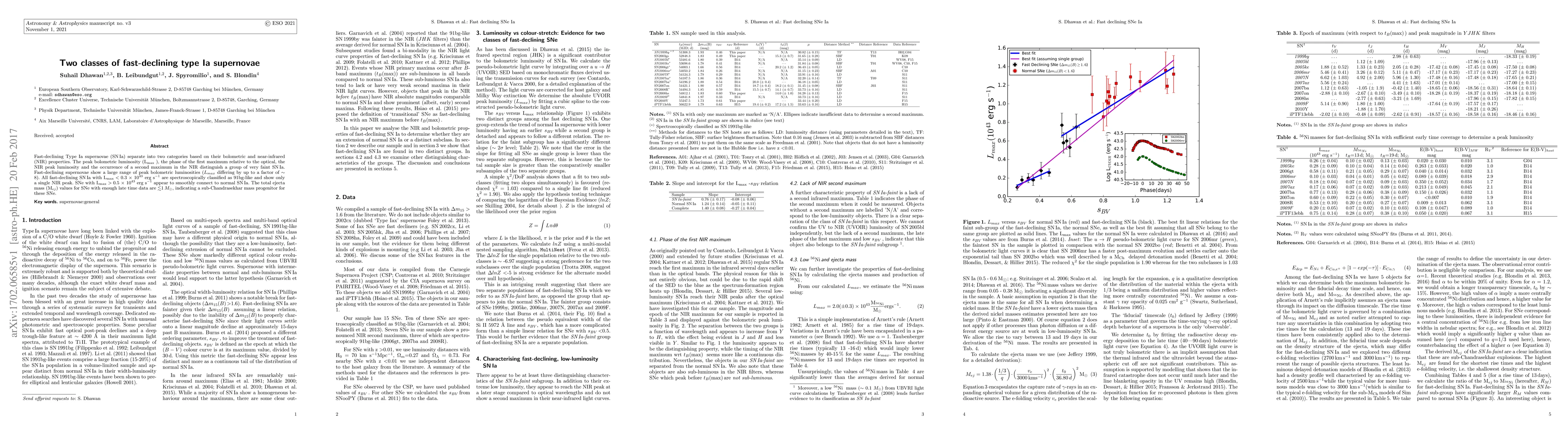 This paper categorizes fast-declining Type Ia supernovae into two classes based on their luminosity and NIR properties, with very faint SNe showing a single NIR peak and sub-Chandrasekhar mass progenitors. The luminosity range of these fast-declining SNe spans up to a factor of 8, with those below a certain threshold classified as 91bg-like.