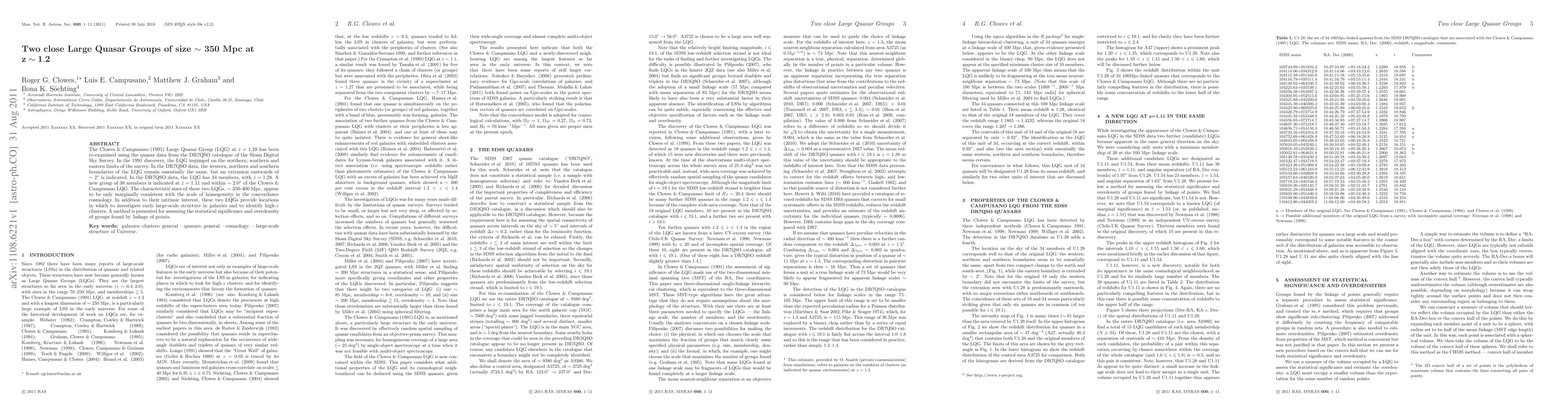 1.11 and within \sim 2.0 deg of the Clowes & Campusano LQG. The characteristic