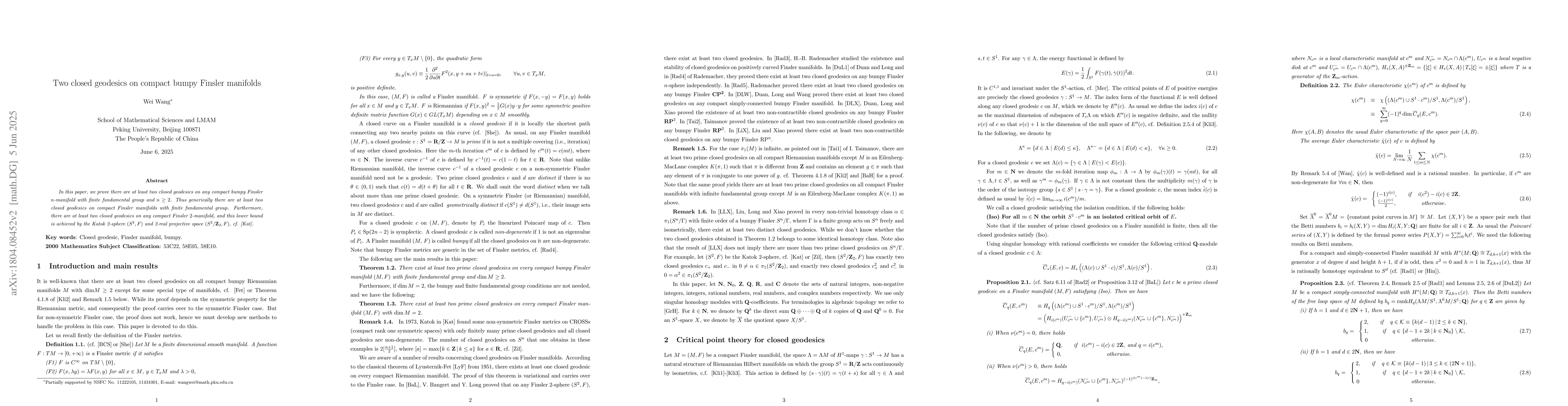 This paper demonstrates the existence of at least two closed geodesics on any compact bumpy Finsler $n$-manifold for $n \geq 2$, with a specific focus on the case of $n=2$ where this lower bound is realized by the Katok 2-sphere.