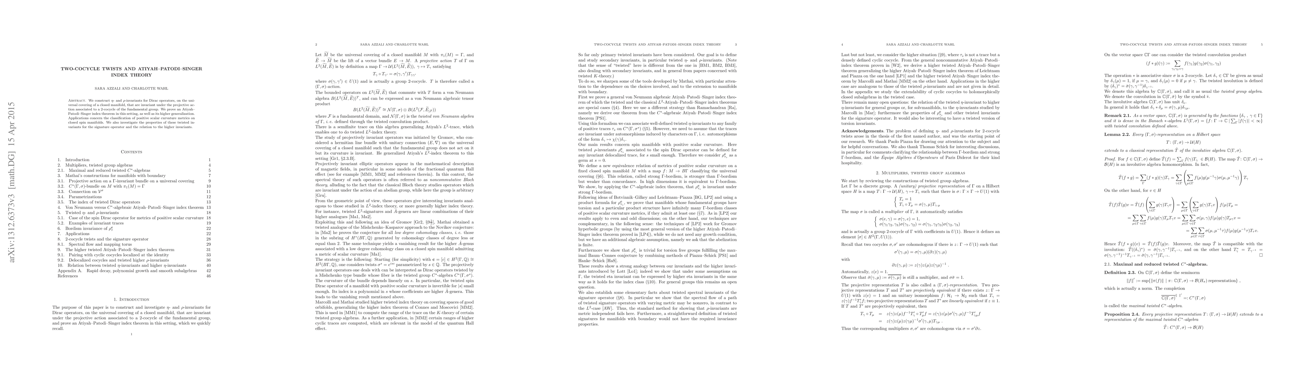 This paper constructs eta- and rho-invariants for twisted Dirac operators on covering spaces using 2-cocycles, proving an Atiyah-Patodi-Singer index theorem in this context and exploring applications to the classification of metrics with positive scalar curvature on spin manifolds.