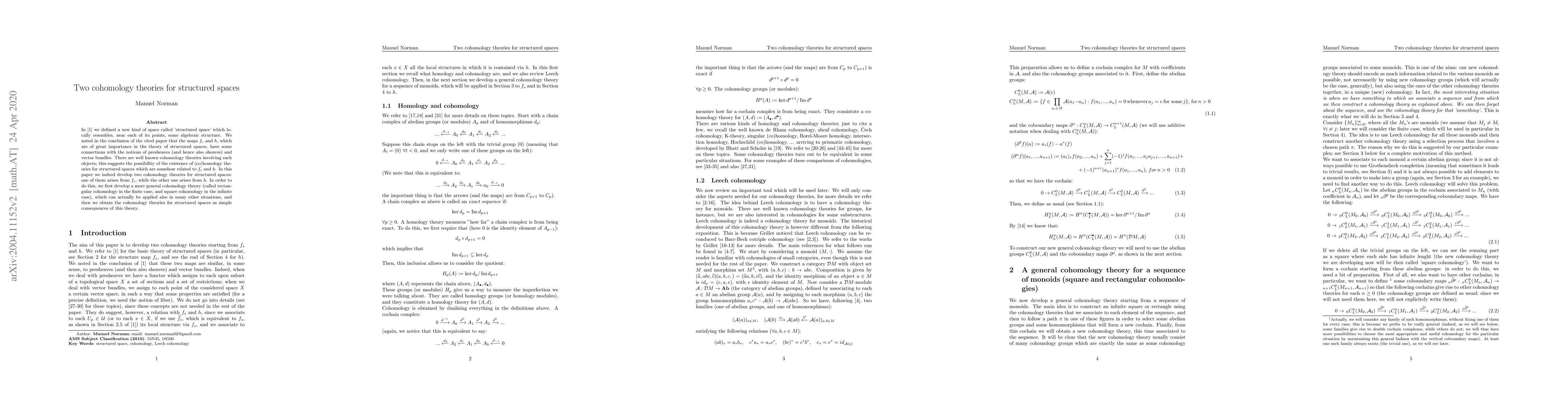 This paper develops two cohomology theories for structured spaces, one linked to the map $f_s$ and the other to the map $h$, building on a general rectangular/square cohomology framework applicable in various contexts.
