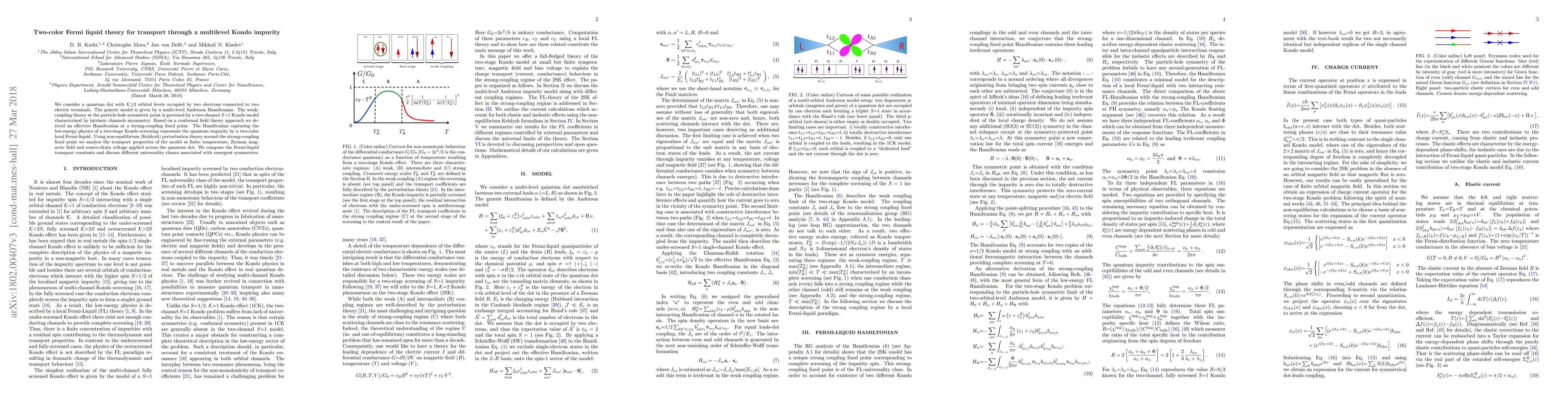 We consider a quantum dot with ${\cal K}{\geq} 2$ orbital levels occupied by two electrons connected to two electric terminals. The generic model is given by a multi-level Anderson Hamiltonian. The weak-coupling theory at the particle-hole symmetric point is governed by a two-channel $S{=}1$ Kondo model characterized by intrinsic channels asymmetry. Based on a conformal field theory approach we derived an effective Hamiltonian at a strong-coupling fixed point. The Hamiltonian capturing the low-energy physics of a two-stage Kondo screening represents the quantum impurity by a two-color local Fermi-liquid. Using non-equilibrium (Keldysh) perturbation theory around the strong-coupling fixed point we analyze the transport properties of the model at finite temperature, Zeeman magnetic field and source-drain voltage applied across the quantum dot. We compute the Fermi-liquid transport constants and discuss different universality classes associated with emergent symmetries.