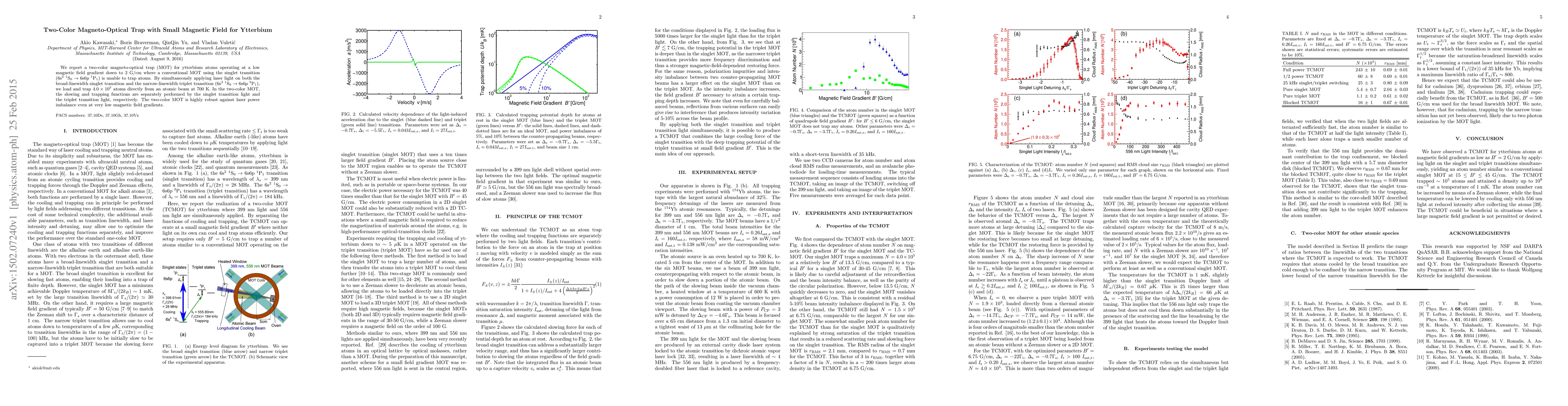 Summary: Researchers developed a two-color magneto-optical trap for ytterbium atoms using low magnetic field gradients, successfully trapping 4.0 x 10^5 atoms by utilizing both singlet and triplet transitions, demonstrating robust performance even with minimal magnetic field differences.