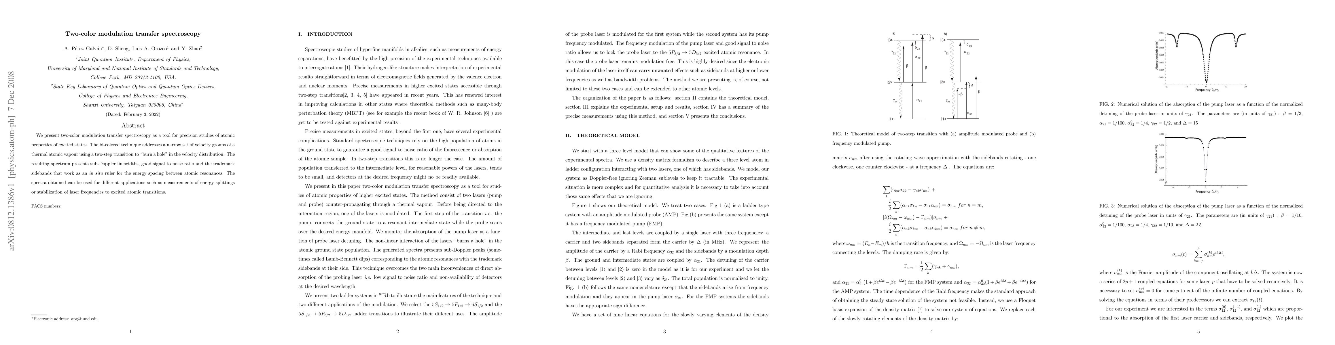 Two-color modulation transfer spectroscopy enables precise studies of atomic properties in excited states by selectively targeting a narrow velocity group in thermal atomic vapor, achieving sub-Doppler linewidths and high signal-to-noise ratios. The technique's sidebands serve as an in situ ruler for measuring energy spacings between resonances.