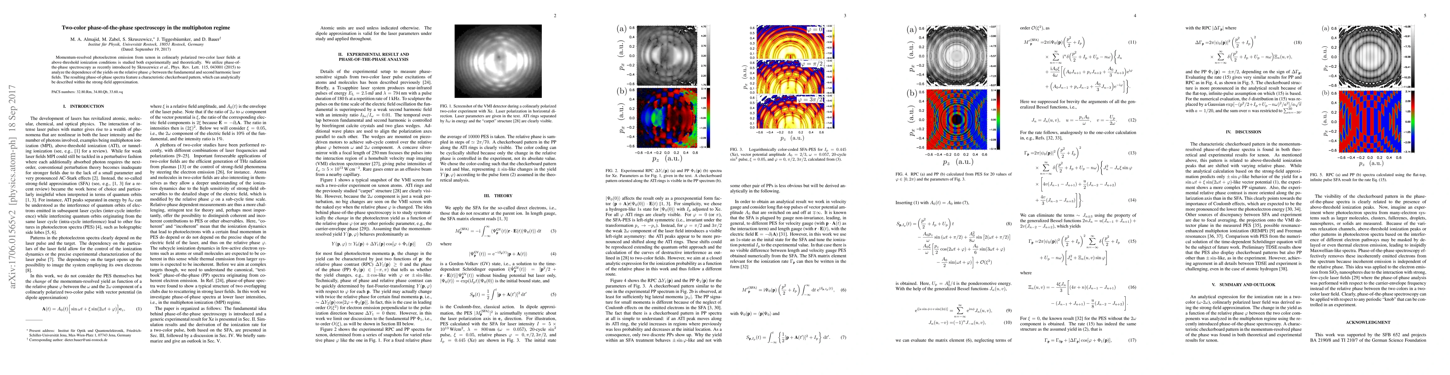 Momentum-resolved photoelectron emission from xenon in colinearly polarized two-color laser fields at above-threshold ionization conditions is studied both experimentally and theoretically. We utilize phase-of-the-phase spectroscopy as recently introduced by Skruszewicz et al., Phys. Rev. Lett. 115, 043001 (2015) to analyze the dependence of the yields on the relative phase $\varphi$ between the fundamental and second harmonic laser fields. The resulting phase-of-phase spectra feature a characteristic checkerboard pattern, which can analytically be described within the strong-field approximation.