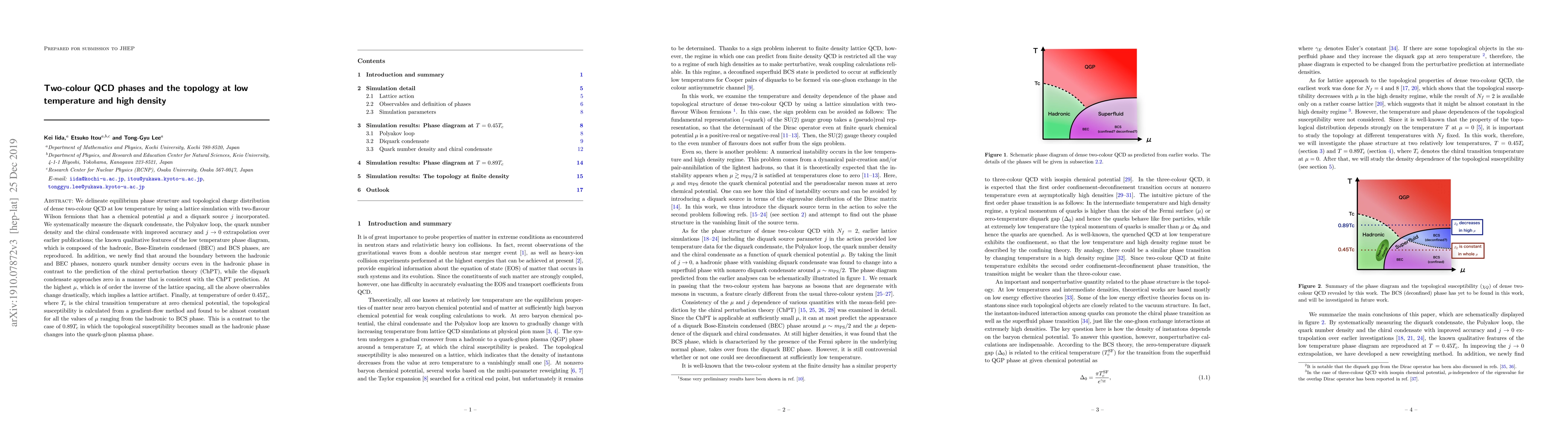 This research paper uses lattice simulations to study the phase structure and topological properties of two-colour QCD at low temperatures and high densities, finding nonzero quark number density in the hadronic phase near the boundary with the Bose-Einstein condensed phase, contrary to chiral perturbation theory predictions. The topological susceptibility remains constant at $0.45T_c$ across different phases, differing from its behavior at $0.89T_c$.