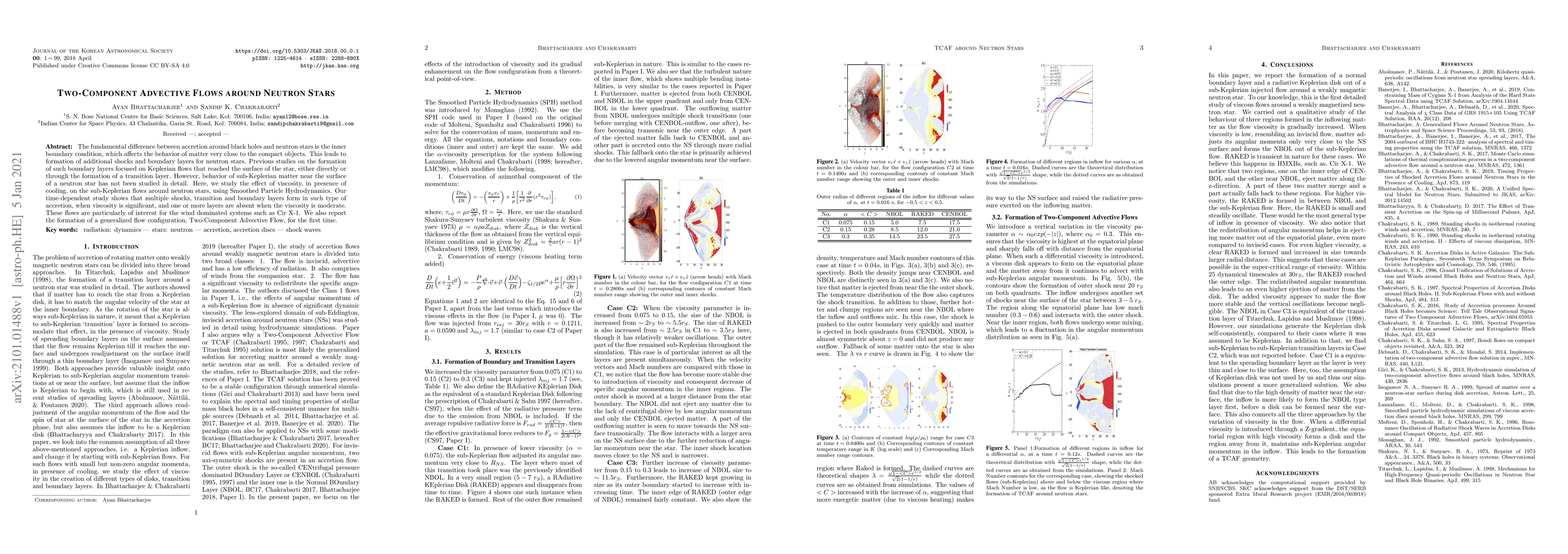 The fundamental difference between accretion around black holes and neutron stars is the inner boundary condition, which affects the behavior of matter very close to the compact objects. This leads to formation of additional shocks and boundary layers for neutron stars. Previous studies on the formation of such boundary layers focused on Keplerian flows that reached the surface of the star, either directly or through the formation of a transition layer. However, behavior of sub-Keplerian matter near the surface of a neutron star has not been studied in detail. Here, we study the effect of viscosity, in presence of cooling, on the sub-Keplerian flows around neutron stars, using Smoothed Particle Hydrodynamics. Our time-dependent study shows that multiple shocks, transition and boundary layers form in such type of accretion, when viscosity is significant, and one or more layers are absent when the viscosity is moderate. These flows are particularly of interest for the wind dominated systems such as Cir X-1. We also report the formation of a generalized flow configuration, Two-Component Advective Flow, for the first time.