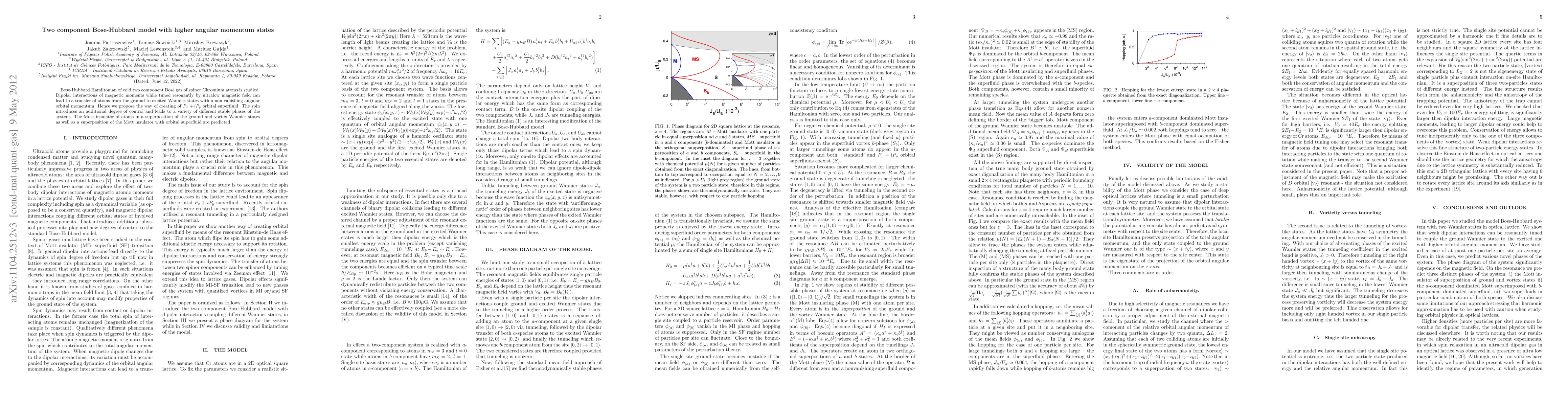 We study a Bose-Hubbard Hamiltonian of ultracold two component gas of spinor Chromium atoms. Dipolar interactions of magnetic moments while tuned resonantly by ultralow magnetic field can lead to spin flipping. Due to approximate axial symmetry of individual lattice site, total angular momentum is conserved. Therefore, all changes of the spin are accompanied by the appearance of the angular orbital momentum. This way excited Wannier states with non vanishing angular orbital momentum can be created. Resonant dipolar coupling of the two component Bose gas introduces additional degree of control of the system, and leads to a variety of different stable phases. The phase diagram for small number of particles is discussed.