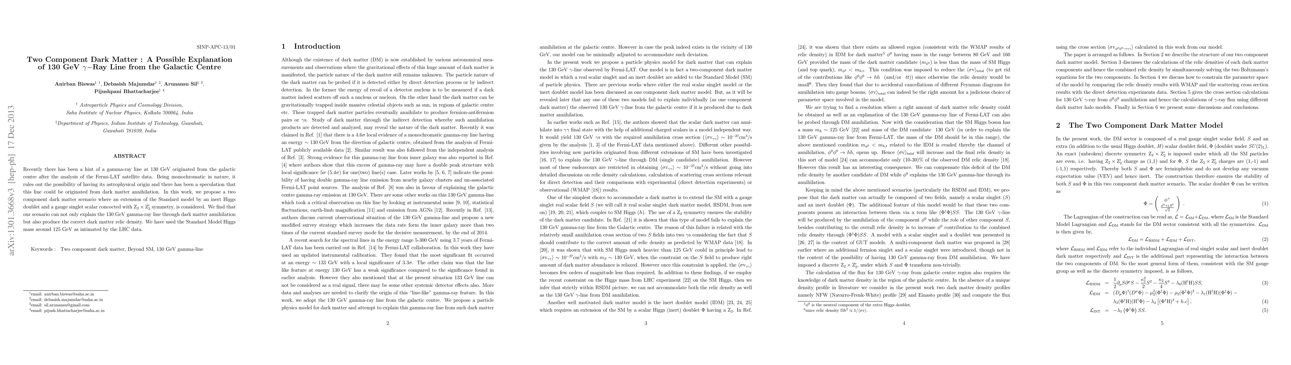 A new study proposes a two-component dark matter model that can explain the 130 GeV gamma-ray line from the galactic centre, while also producing the correct dark matter relic density.
