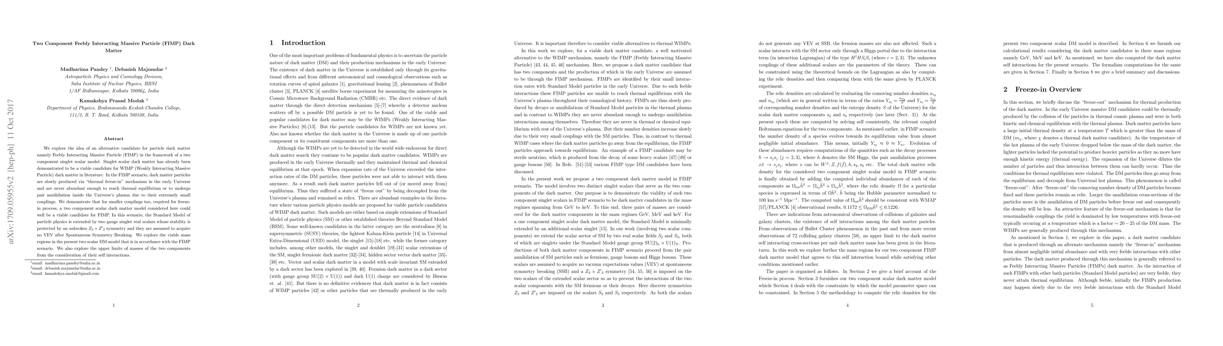 This paper investigates a two-component Feebly Interacting Massive Particle (FIMP) dark matter model within a framework of a singlet scalar extension to the Standard Model. The authors demonstrate that a two-component scalar dark matter model, produced via a "thermal freeze-in" mechanism, can be a viable FIMP candidate, exploring viable mass regions and upper limits of the masses based on self-interactions.