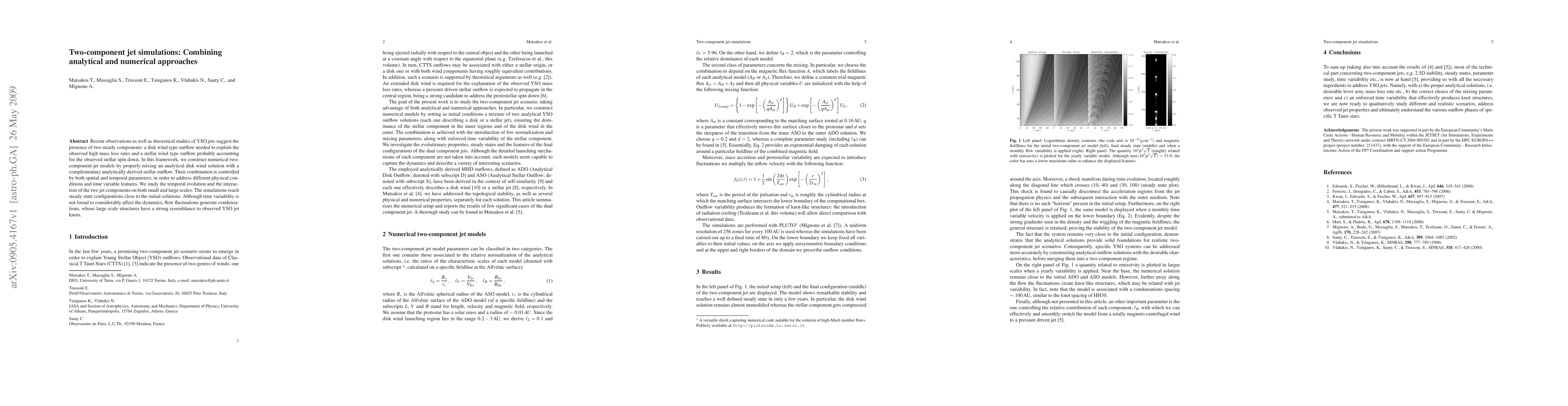 Recent observations as well as theoretical studies of YSO jets suggest the presence of two steady components: a disk wind type outflow needed to explain the observed high mass loss rates and a stellar wind type outflow probably accounting for the observed stellar spin down. In this framework, we construct numerical two-component jet models by properly mixing an analytical disk wind solution with a complementary analytically derived stellar outflow. Their combination is controlled by both spatial and temporal parameters, in order to address different physical conditions and time variable features. We study the temporal evolution and the interaction of the two jet components on both small and large scales. The simulations reach steady state configurations close to the initial solutions. Although time variability is not found to considerably affect the dynamics, flow fluctuations generate condensations, whose large scale structures have a strong resemblance to observed YSO jet knots.