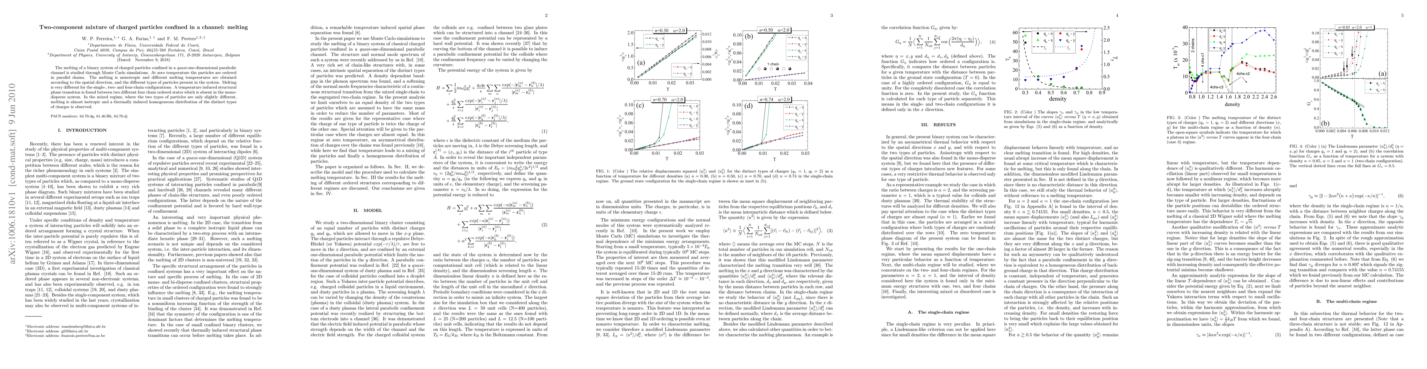 Researchers studied the melting of charged particles in a channel using Monte Carlo simulations, finding anisotropic melting temperatures depending on particle configuration and type.