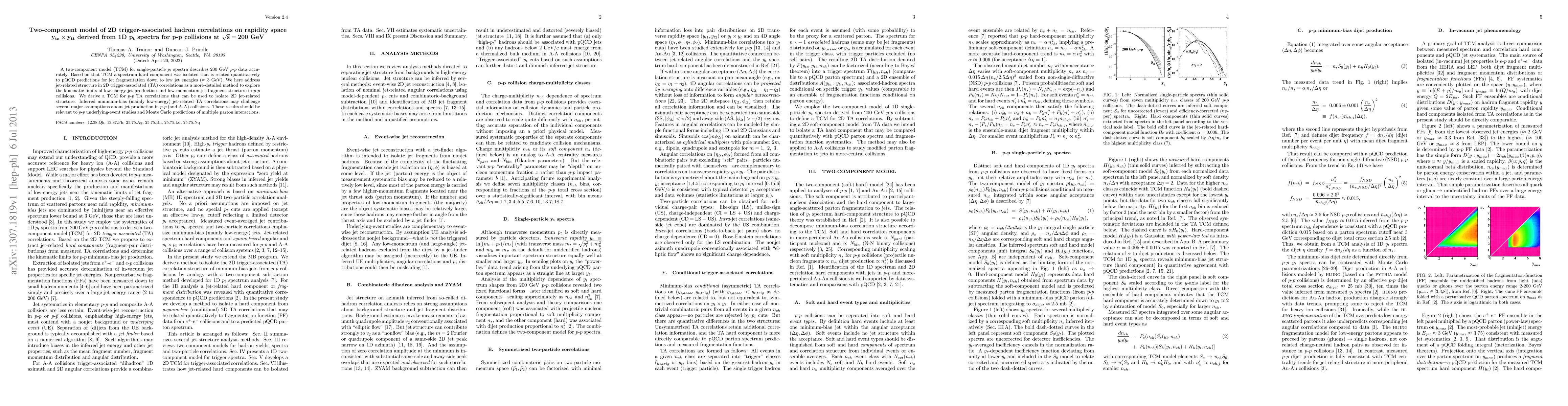 This paper develops a two-component model (TCM) for 2D trigger-associated hadron correlations in 200 GeV p-p collisions, derived from a TCM for single-particle $p_t$ spectra. The model isolates jet-related structures that challenge assumptions about low-energy jet production.