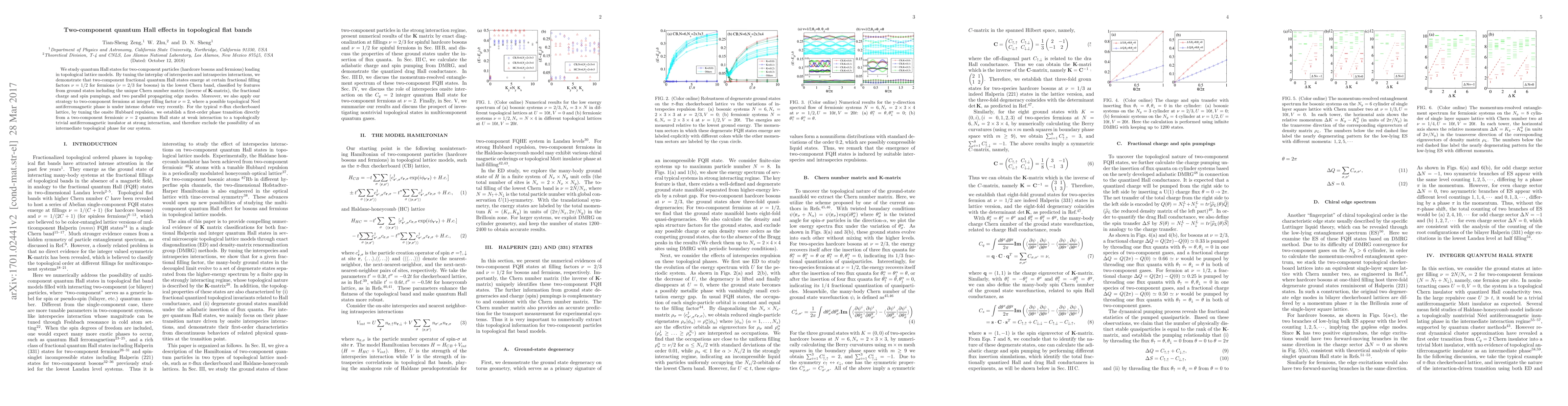 This paper investigates quantum Hall states in topological lattice models with two-component particles, showing the emergence of fractional quantum Hall states at $\nu=1/2$ for fermions and $\nu=2/3$ for bosons, characterized by unique Chern number matrices and edge modes. It also examines a phase transition in two-component fermions at $\nu=2$, ruling out an intermediate topological phase between a quantum Hall state and a trivial antiferromagnetic insulator.
