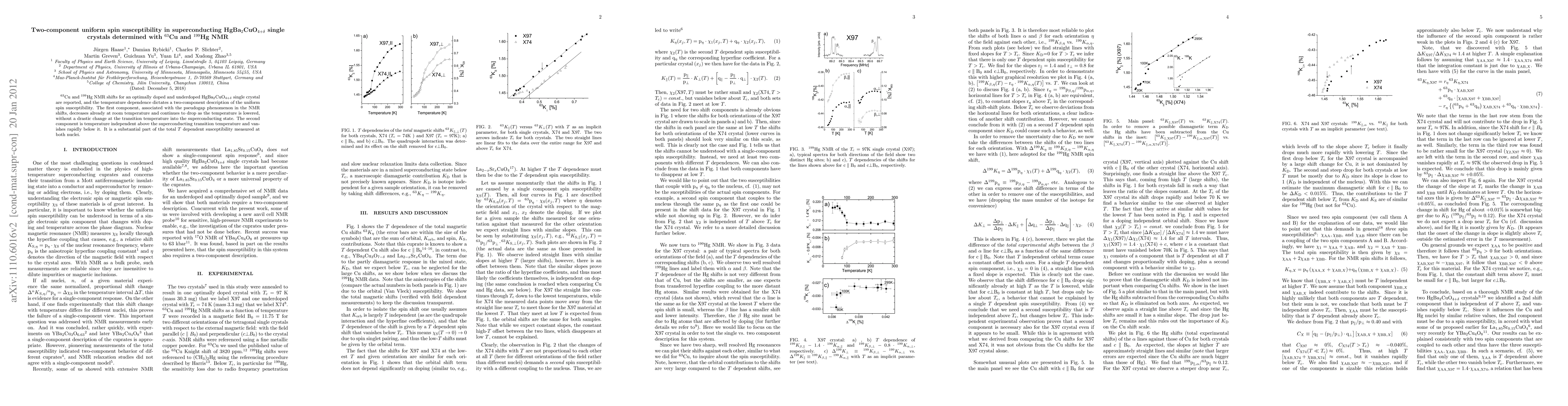 Researchers used NMR to study HgBa2CuO4+δ superconductors, finding a two-component spin susceptibility that decreases with temperature for one component and remains constant above the transition point.