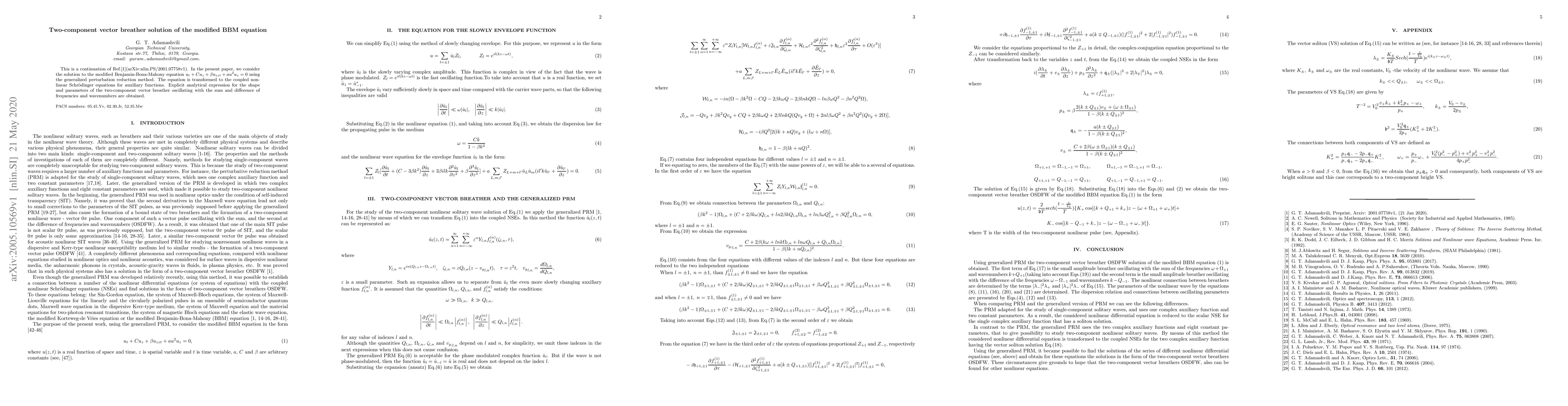 This is a continuation of Ref.[1](arXiv:nlin.PS/2001.07758v1). In the present paper, we consider the solution to the modified Benjamin-Bona-Mahony equation $u_{ t} + C u_{z} + \beta u_{zzt} + a u^{2} u_{z}=0$ using the generalized perturbation reduction method. The equation is transformed to the coupled nonlinear Schr\"odinger equations for auxiliary functions. Explicit analytical expression for the shape and parameters of the two-component vector breather oscillating with the sum and difference of frequencies and wavenumbers are obtained.