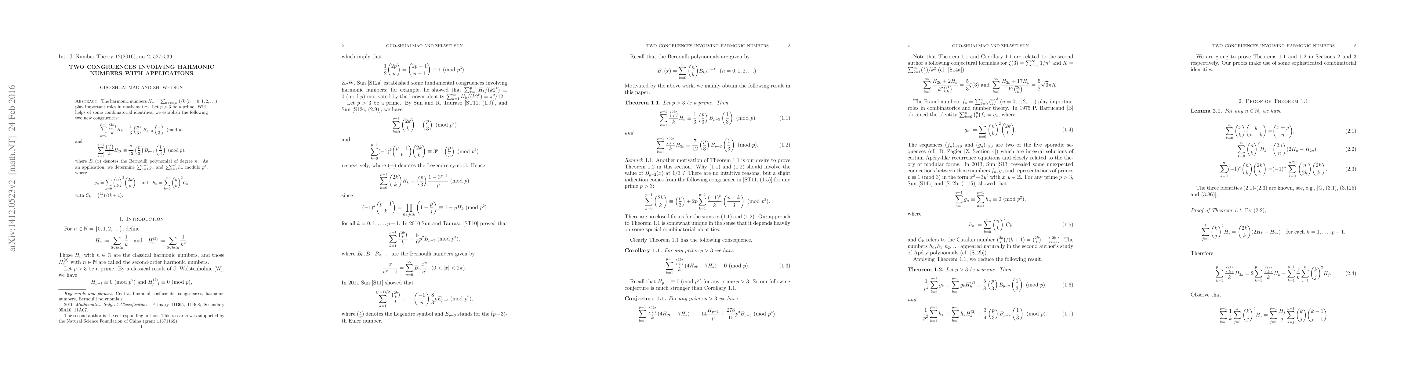 The harmonic numbers $H_n=\sum_{03$ be a prime. With helps of some