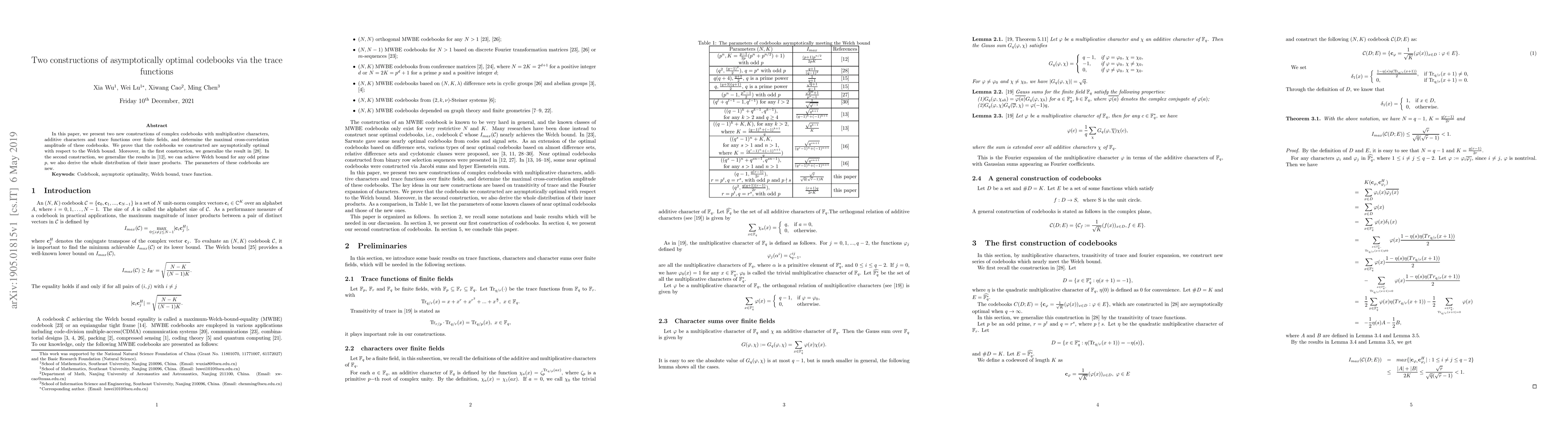 In this paper, we present two new constructions of complex codebooks with multiplicative characters, additive characters and trace functions over finite fields, and determine the maximal cross-correlation amplitude of these codebooks. We prove that the codebooks we constructed are asymptotically optimal with respect to the Welch bound. Moreover, in the first construction, we generalize the result in [28]. In the second construction, we generalize the results in [12], we can achieve Welch bound for any odd prime p, we also derive the whole distribution of their inner products. The parameters of these codebooks are new.