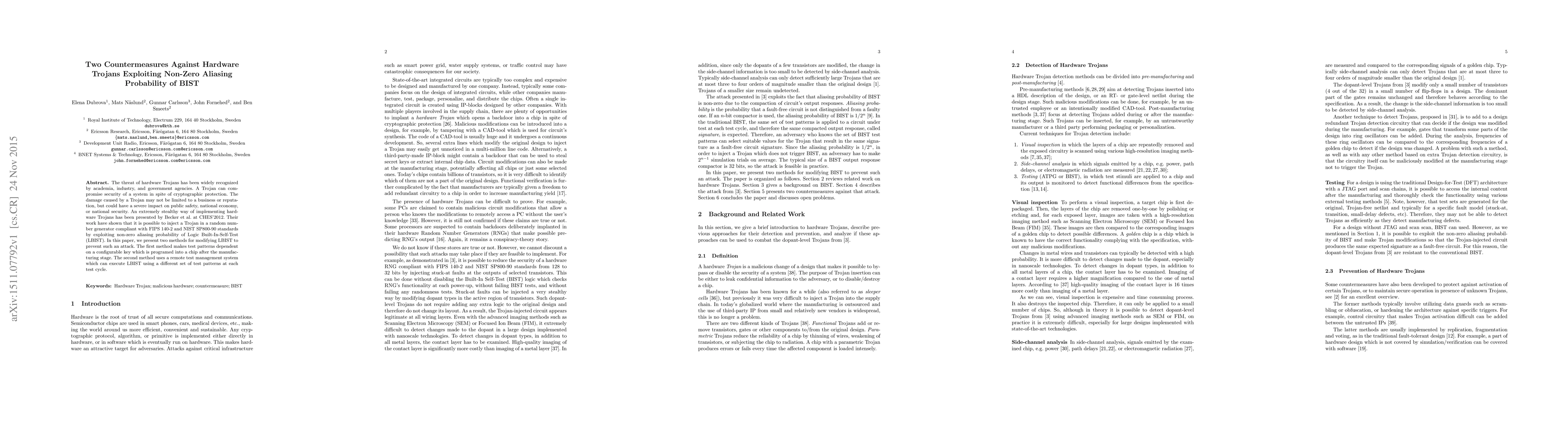 Researchers present two methods to prevent hardware Trojans from exploiting non-zero aliasing probability of Logic Built-In-Self-Test (LBIST), a critical self-test mechanism in secure systems.