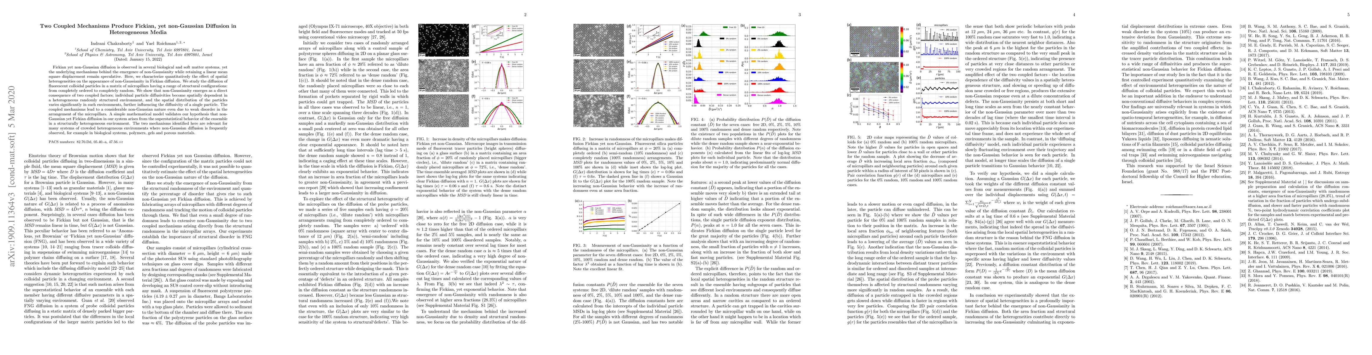 This paper investigates the mechanisms behind non-Gaussian yet Fickian diffusion in heterogeneous media, revealing that spatial dependency of individual particle diffusivities and significant variation in particle spatial distribution due to structural heterogeneity are the two coupled factors responsible. The study uses fluorescent colloidal particles in a matrix of micropillars to validate these mechanisms.