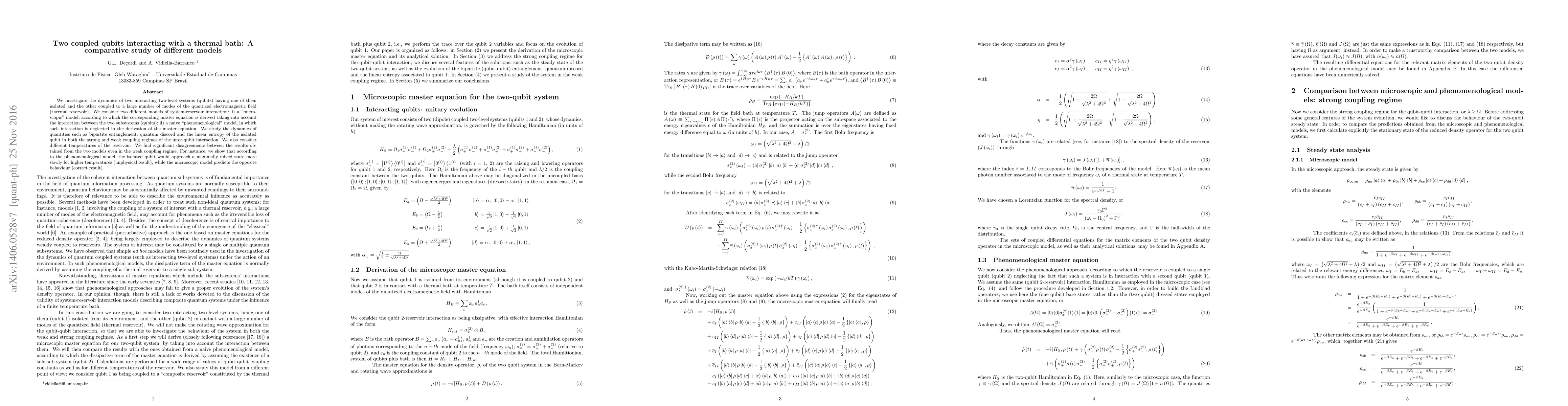 We investigate a system of two interacting qubits having one of them isolated and the other coupled to a thermal reservoir. We consider two different models of system-reservoir interaction: i) a "microscopic" model, in which the master equation is derived taking into account the interaction between the two subsystems (qubits), ii) a naive "phenomenological" model, in which the master equation consists of a dissipative term added to the unitary evolution term. We study the dynamics of quantities such as bipartite entanglement, quantum discord and the linear entropy of the isolated qubit for both strong and weak coupling regimes (qubit-qubit interaction) as well as for different temperatures of the reservoir. We find significant disagreements between the results obtained from the two models even in the weak coupling regime. For instance, we show that according to the phenomenological model, the isolated qubit would approach a maximally mixed state more slowly for higher temperatures (unphysical result), while the microscopic model predicts the opposite behaviour (correct result).