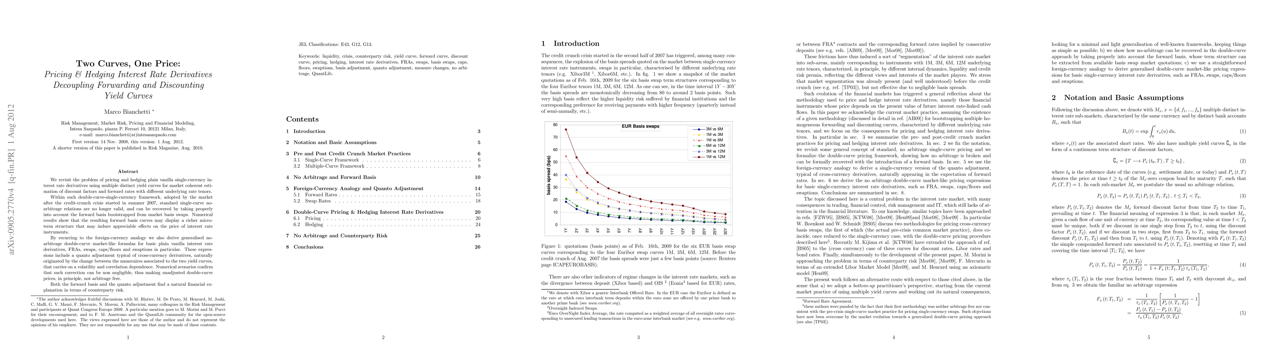 This paper explores the pricing and hedging of interest rate derivatives using two distinct yield curves for discounting and forwarding, addressing the market's double-curve framework post-2007 credit crisis. It demonstrates that the forward basis and quanto adjustment, both linked to counterparty risk, are essential for ensuring arbitrage-free pricing in this framework.