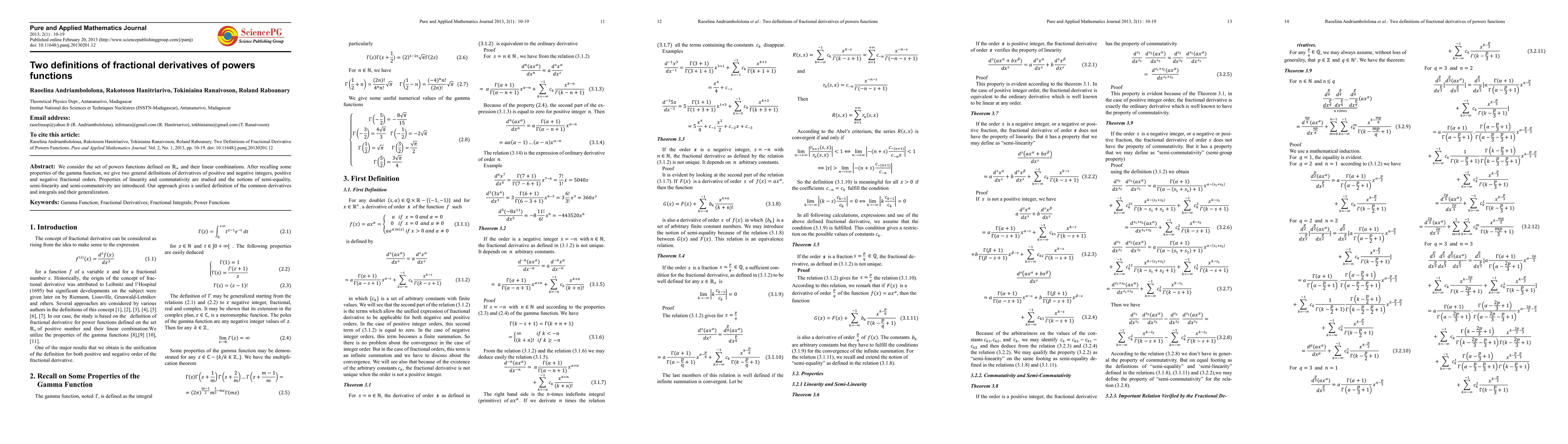 The paper introduces two definitions of fractional derivatives for power functions, providing a unified approach to common derivatives and integrals with generalized orders.