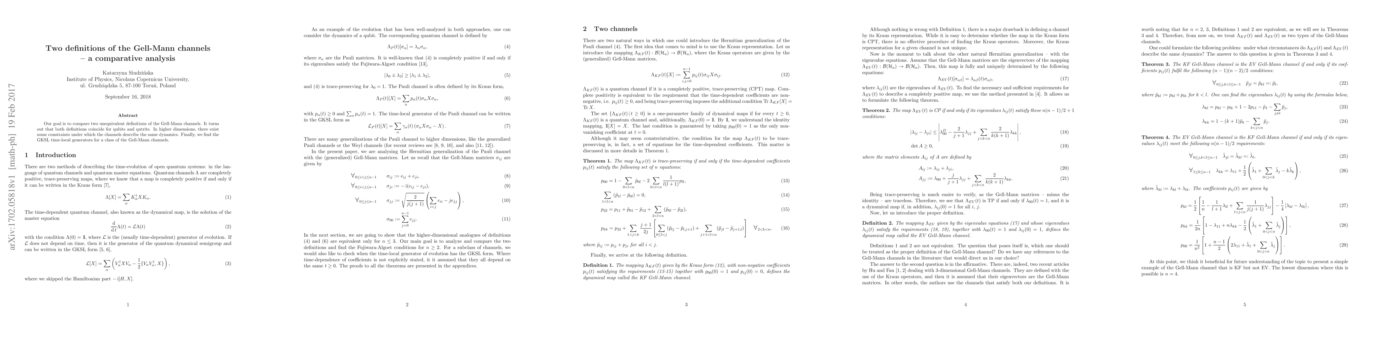 A study compares two definitions of Gell-Mann channels for quantum systems and finds they coincide in low dimensions but can have different dynamics in higher dimensions.
