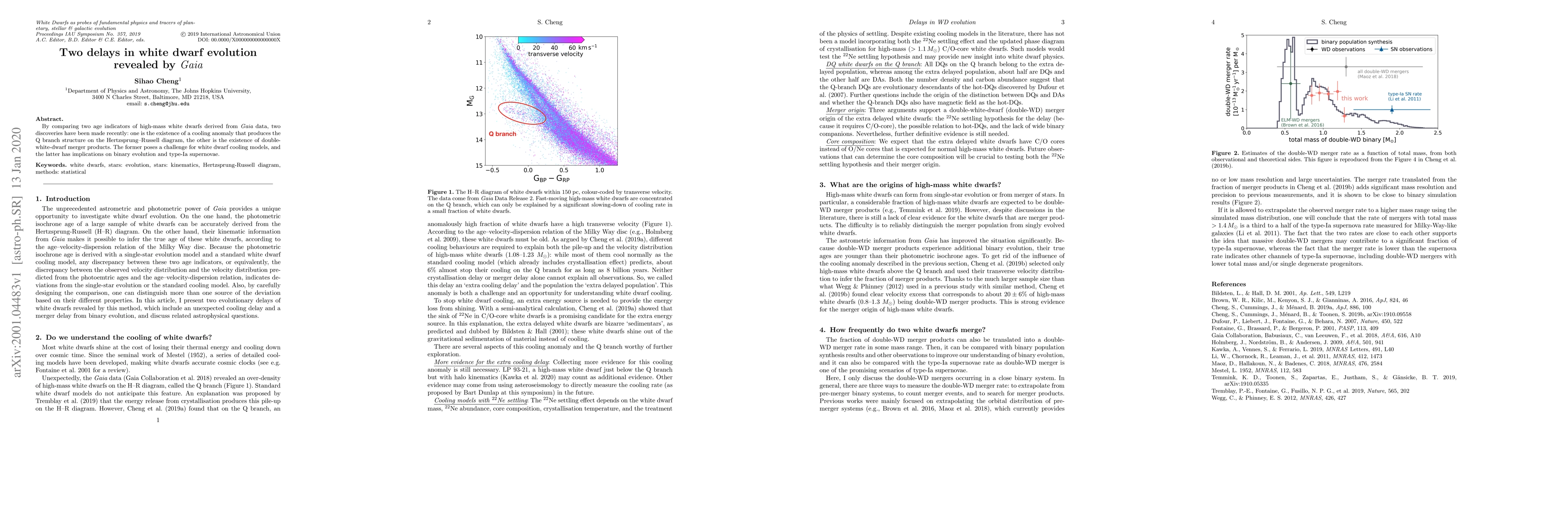 By comparing two age indicators of high-mass white dwarfs derived from Gaia data, two discoveries have been made recently: one is the existence of a cooling anomaly that produces the Q branch structure on the Hertzsprung--Russell diagram, the other is the existence of double-white-dwarf merger products. The former poses a challenge for white dwarf cooling models, and the latter has implications on binary evolution and type-Ia supernovae.