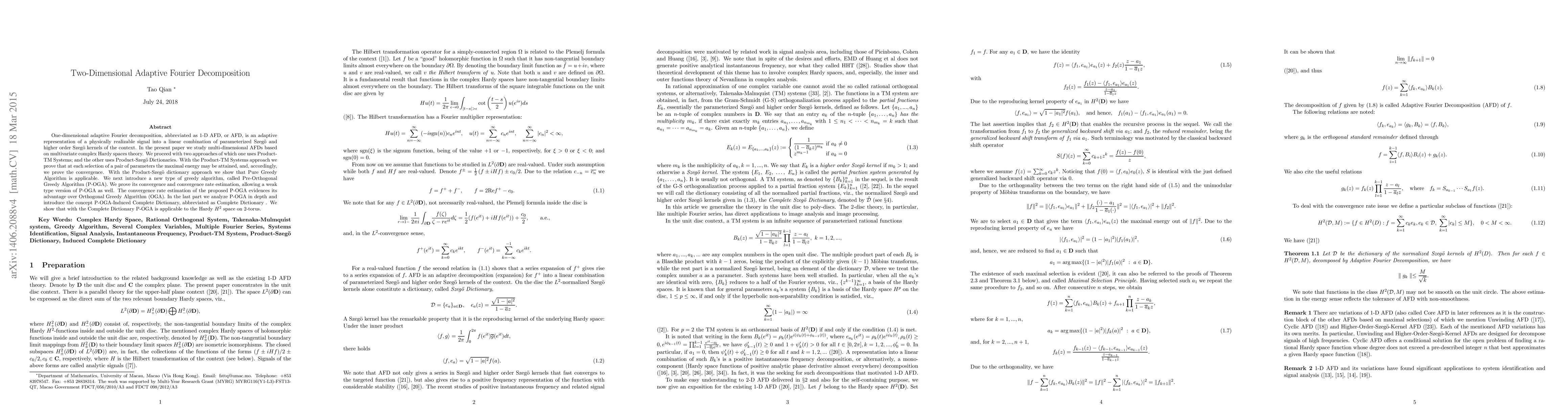 This research extends adaptive Fourier decomposition to two-dimensional settings using multivariate complex Hardy spaces, introducing new algorithms for efficient signal representation. It proves convergence and explores the advantages of these algorithms, enhancing the analysis of multidimensional signals.