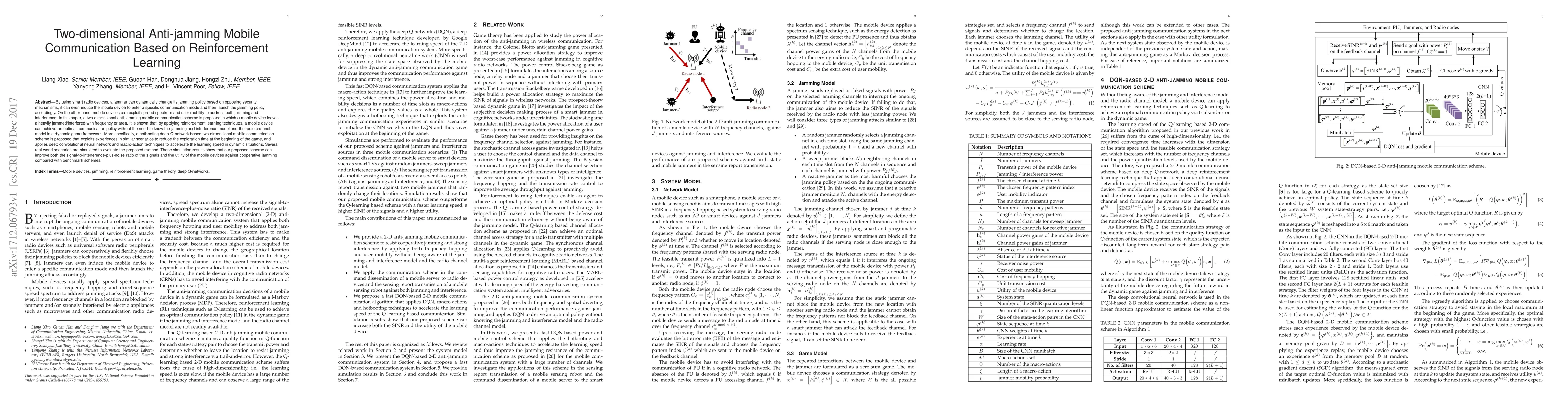 This paper proposes a reinforcement learning-based two-dimensional anti-jamming mobile communication scheme that enables mobile devices to dynamically adapt to jamming and interference without prior knowledge of the jamming model. The method employs a hotbooting deep Q-network to accelerate learning and improve communication efficiency in dynamic environments.