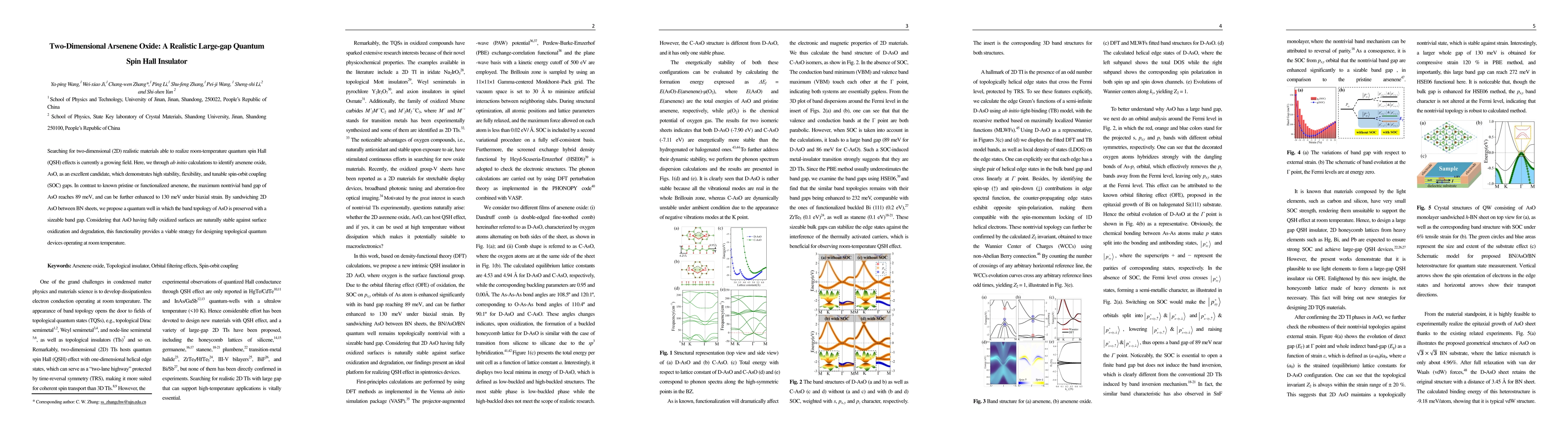 Arsenene oxide (AsO) identified through ab initio calculations is a stable, flexible, and tunable quantum spin Hall insulator with a maximum band gap of 89 meV, further enhanced to 130 meV under biaxial strain, making it a promising material for room-temperature topological quantum devices. Sandwiching AsO between BN sheets maintains its topological properties, offering a viable strategy for practical quantum applications.