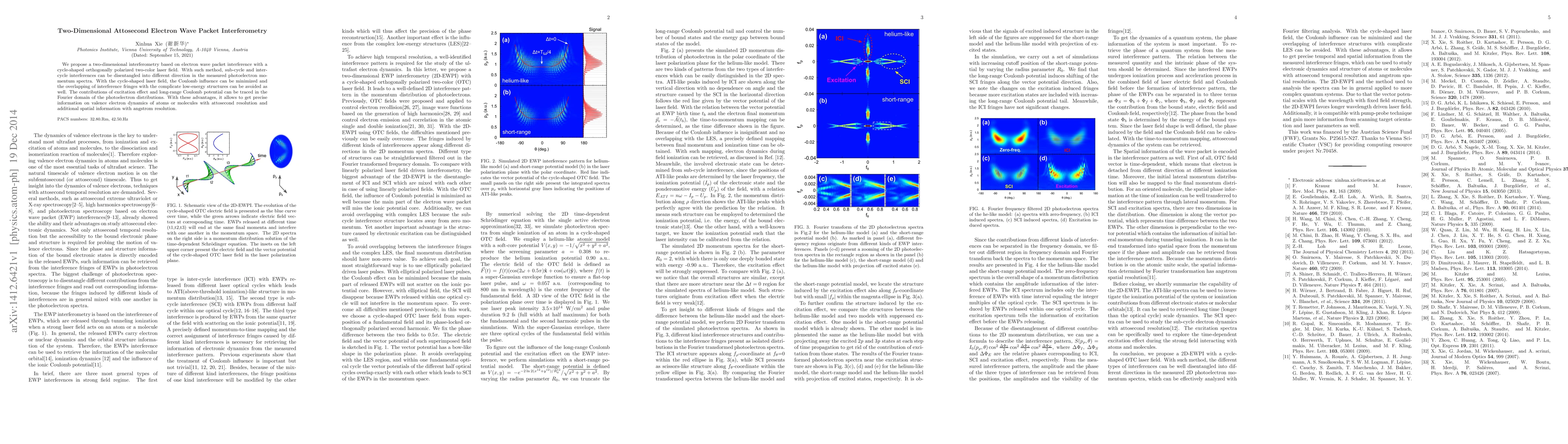 We propose a two-dimensional interferometry based on electron wave packet interference with a cycle-shaped orthogonally polarized two-color laser field. With such method, sub-cycle and inter-cycle interferences can be disentangled into different direction in the measured photoelectron momentum spectra. With the cycle-shaped laser field, the Coulomb influence can be minimized and the overlapping of interference fringes with the complicate low-energy structures can be avoided as well. The contributions of excitation effect and long-range Coulomb potential can be traced in the Fourier domain of the photoelectron distributions. With these advantages, it allows to get precise information on valence electron dynamics of atoms or molecules with attosecond resolution and additional spatial information with angstrom resolution.
