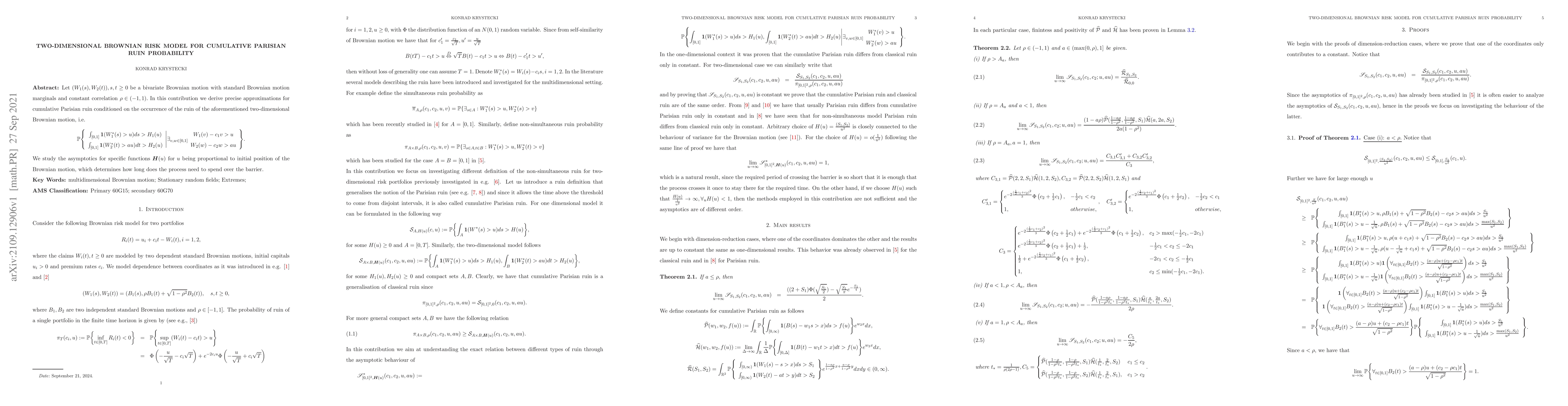Let $(W_1(s), W_2(t)), s,t\ge 0$ be a bivariate Brownian motion with standard Brownian motion marginals and constant correlation $\rho \in (-1,1).$ In this contribution we derive precise approximations for cumulative Parisian ruin conditioned on the occurrence of the ruin of the aforementioned two-dimensional Brownian motion, i.e. $$\mathbb{P}\left(\begin{array}{ccc}\int_{[0,1]} \mathbf{1}(W_1^*(s)>u)ds>H_1(u) \\ \int_{[0,1]} \mathbf{1}(W_2^*(t)>au)dt>H_2(u)\end{array}\Bigg{|}\exists_{v,w \in [0,1]}\begin{array}{ccc} W_1(v)-c_1v>u \\ W_2(w)-c_2w>au \end{array}\right).$$ We study the asymptotics for specific functions $\boldsymbol{H}(u)$ for $u$ being proportional to initial position of the Brownian motion, which determines how long does the process need to spend over the barrier.