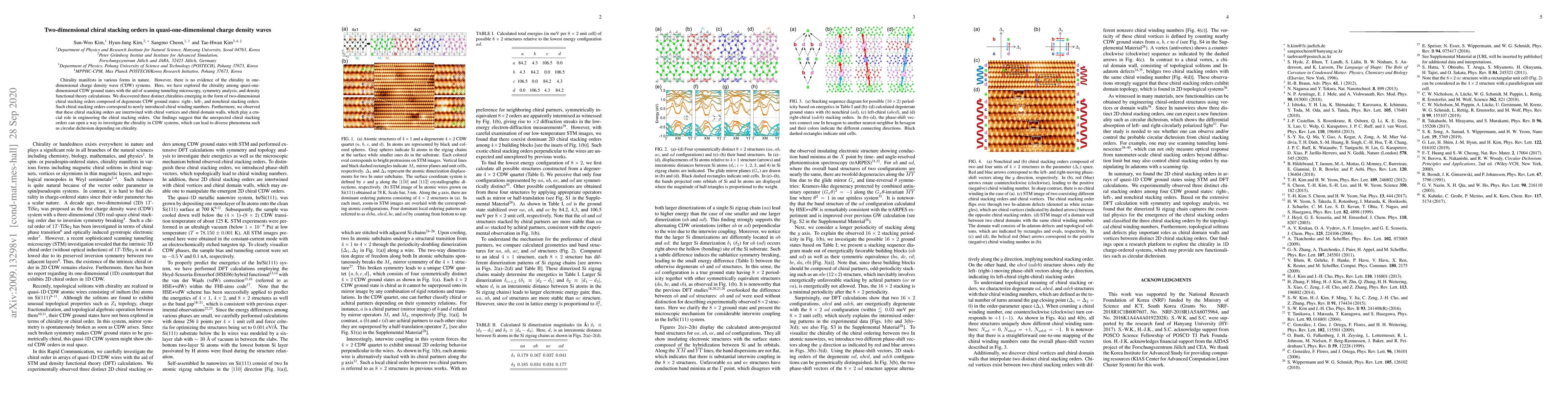 The paper introduces chiral winding numbers to classify three chiral stacking orders in quasi-one-dimensional CDW systems and demonstrates their topological significance using STM, symmetry analysis, and DFT calculations.
