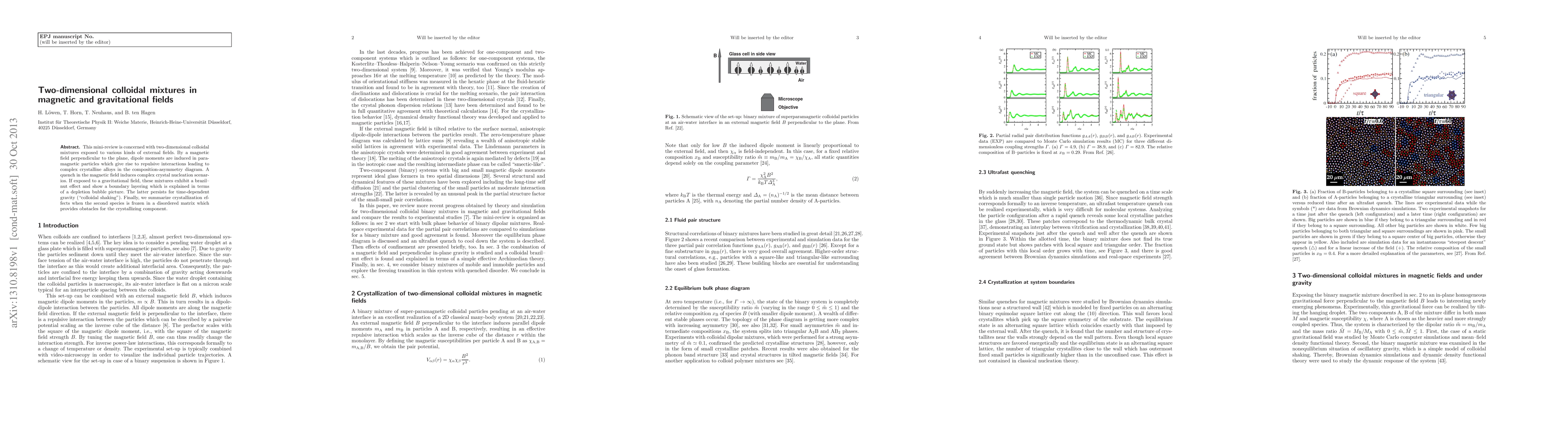 This mini-review explores the behavior of two-dimensional colloidal mixtures under magnetic and gravitational fields, revealing complex crystalline structures and nucleation patterns induced by magnetic fields, and boundary layering and brazil-nut dynamics under gravity, with persistent effects from time-dependent gravity.