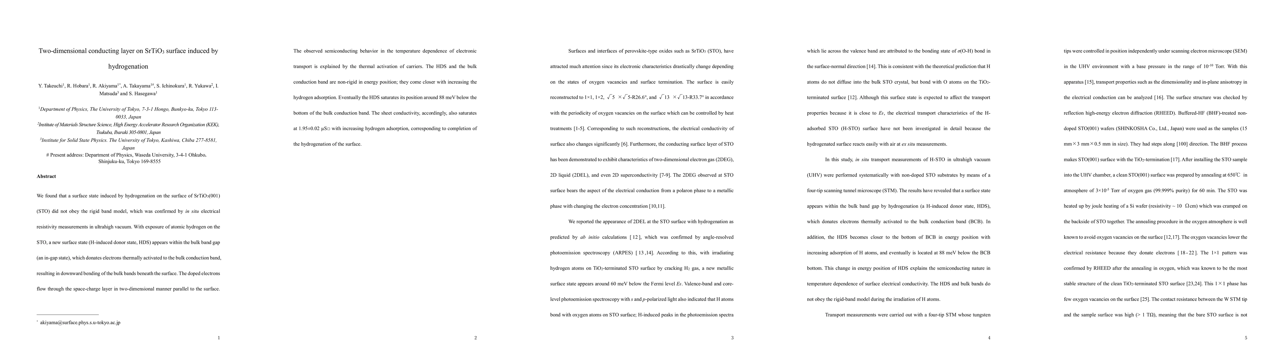 Researchers discovered a new surface state on SrTiO3 that conducts electricity in two dimensions, and hydrogenation induces this state, allowing for semiconducting behavior with temperature-dependent carrier activation.