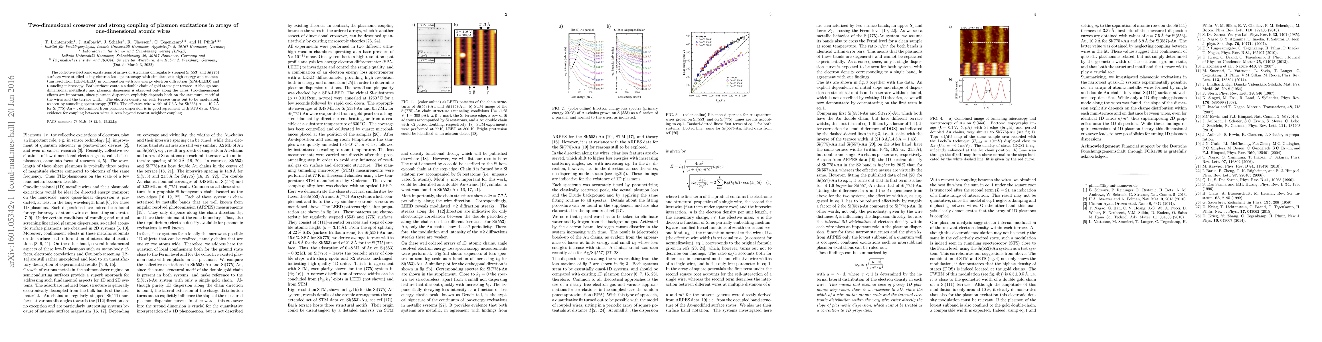 The collective electronic excitations of arrays of Au chains on regularly stepped Si(553) and Si(775) surfaces were studied using electron loss spectroscopy with simultaneous high energy and momentum resolution (ELS-LEED) in combination with low energy electron diffraction (SPA-LEED) and tunneling microscopy. Both surfaces contain a double chain of gold atoms per terrace. Although one-dimensional metallicity and plasmon dispersion is observed only along the wires, two-dimensional effects are important, since plasmon dispersion explicitly depends both on the structural motif of the wires and the terrace width. The electron density on each terrace turns out to be modulated, as seen by tunneling spectroscopy (STS). The effective wire width of 7.5\,\AA\ for Si(553)-Au -- 10.2\,\AA\ for Si(775)-Au -- , determined from plasmon dispersion is in good agreement with STS data. Clear evidence for coupling between wires is seen beyond nearest neighbor coupling.