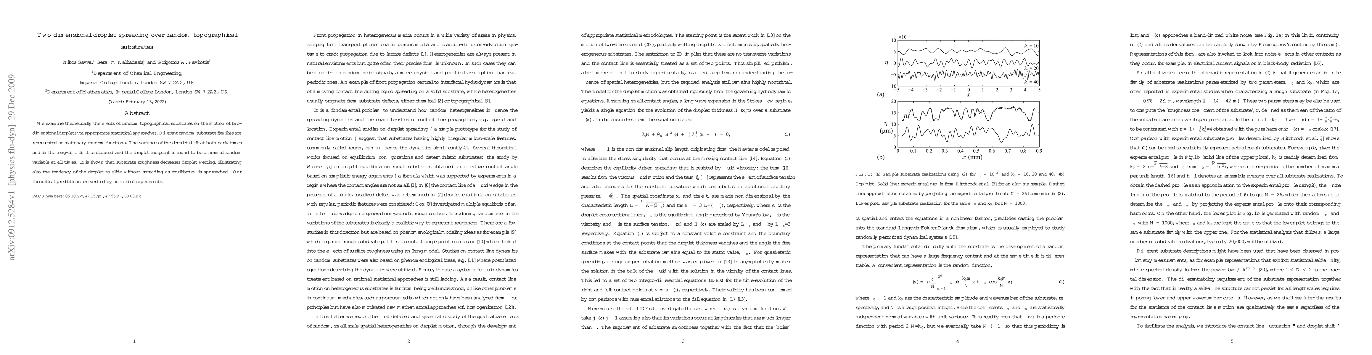 This paper theoretically investigates how random topographical substrates affect the spreading behavior of two-dimensional droplets, finding that substrate roughness reduces droplet wetting and causes the droplet to slide without spreading as equilibrium is reached. Numerical simulations confirm the theoretical predictions.