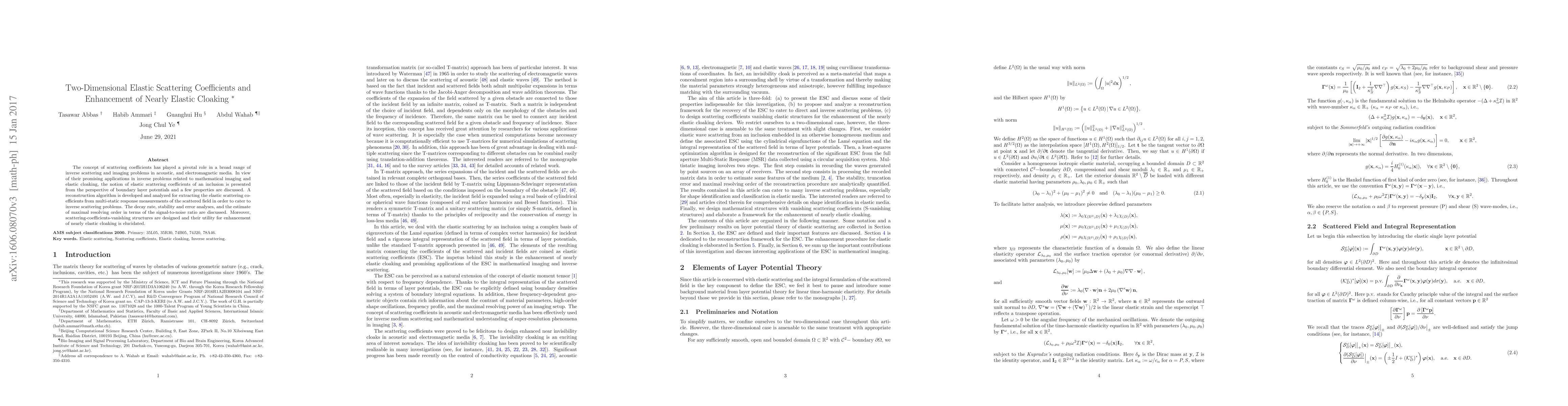This paper presents elastic scattering coefficients for inclusions in acoustic and electromagnetic media, focusing on their application in inverse scattering and imaging. It develops a reconstruction algorithm for extracting these coefficients and discusses their role in enhancing nearly elastic cloaking through scattering-coefficients-vanishing structures.