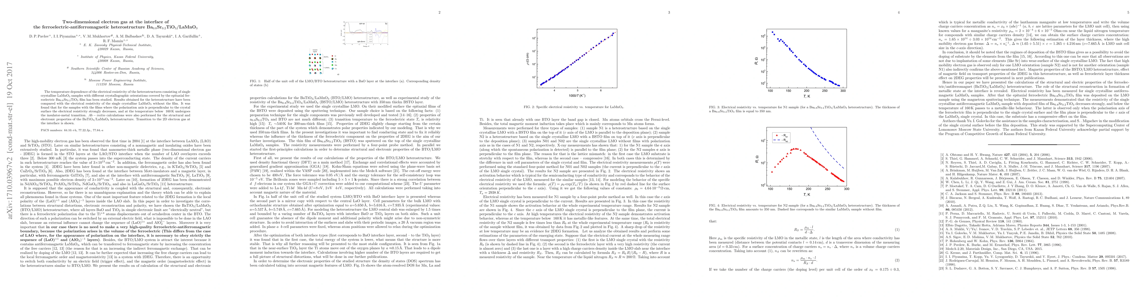 The paper studies a ferroelectric-antiferromagnetic heterostructure that undergoes an insulator-metal transition at low temperatures, forming a 2D electron gas at the interface.