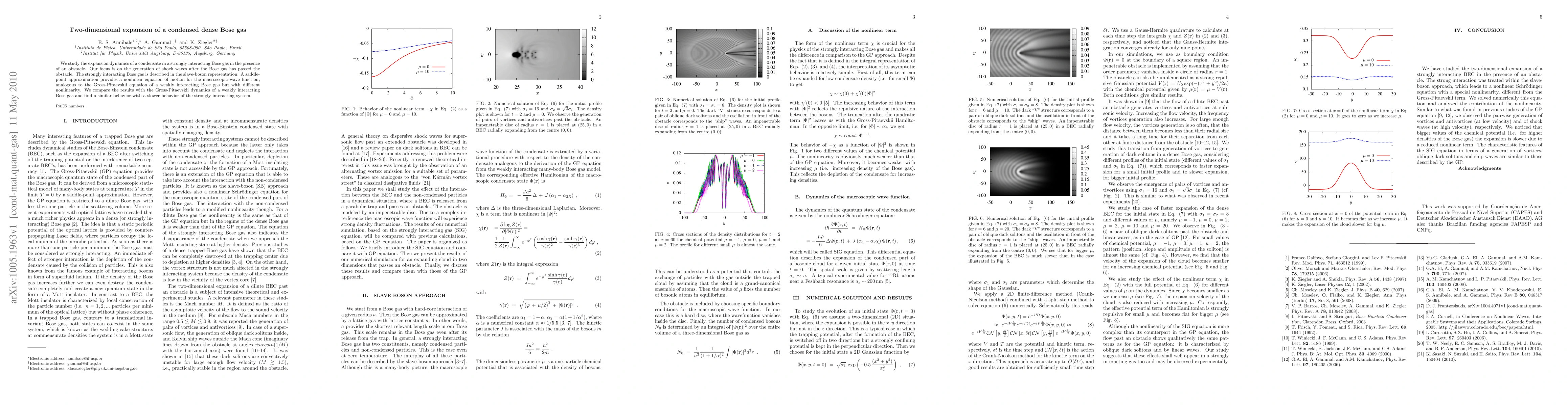This paper investigates the expansion dynamics of a strongly interacting Bose gas encountering an obstacle, focusing on the generation of shock waves. It employs a slave-boson representation and a saddle-point approximation to derive a nonlinear equation of motion for the macroscopic wave function, revealing a similar but slower behavior compared to weakly interacting Bose gas dynamics described by the Gross-Pitaevskii equation.