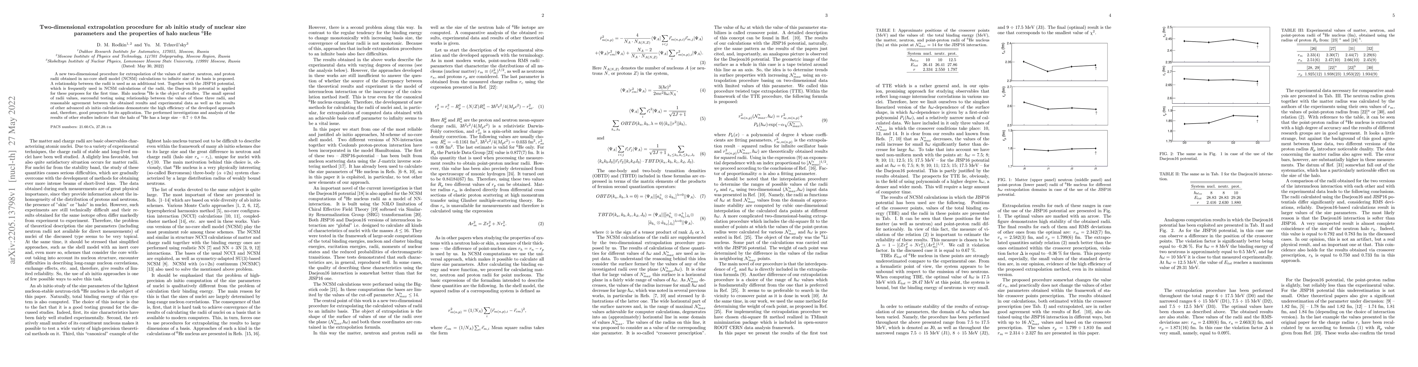 This paper proposes a new two-dimensional extrapolation method for determining nuclear size parameters in ab initio calculations, specifically applied to the halo nucleus 6He. The method shows high efficiency and good agreement with experimental data, indicating the large size of the 6He halo.
