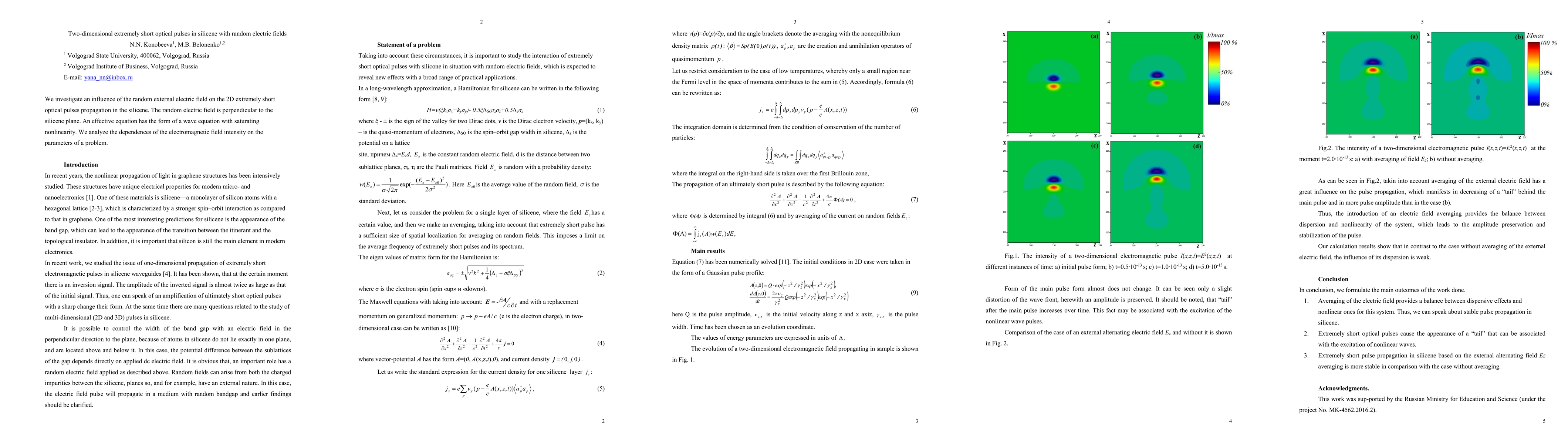 We investigate an influence of the random external electric field on the 2D extremely short optical pulses propagation in the silicene. The random electric field is perpendicular to the silicene plane. An effective equation has the form of a wave equation with saturating nonlinearity. We analyze the dependences of the electromagnetic field intensity on the parameters of a problem.