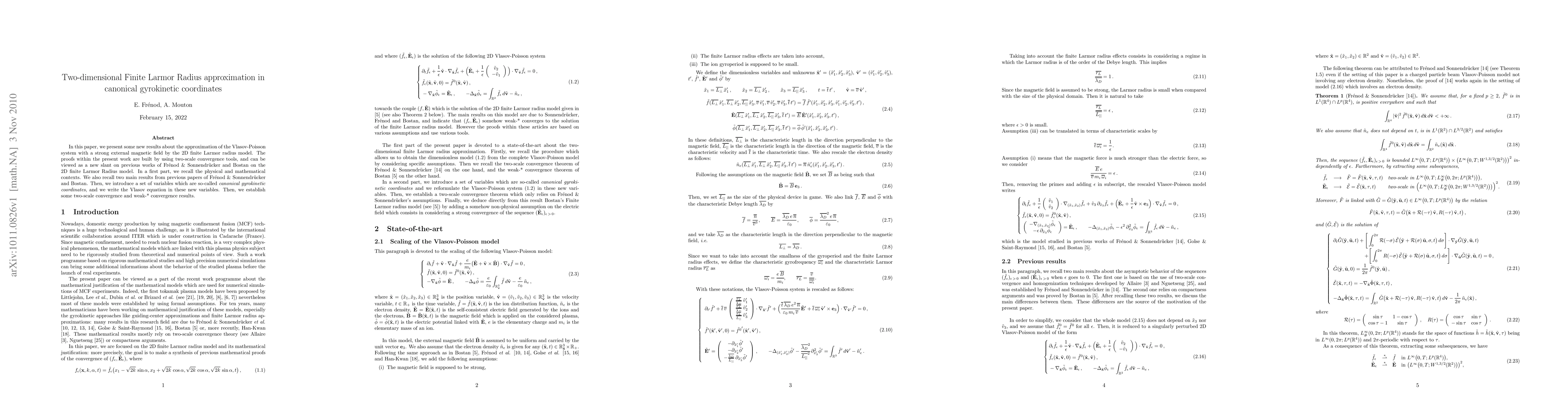 In this paper, we present some new results about the approximation of the Vlasov-Poisson system with a strong external magnetic field by the 2D finite Larmor radius model. The proofs within the present work are built by using two-scale convergence tools, and can be viewed as a new slant on previous works of Fr\'enod and Sonnendr\"ucker and Bostan on the 2D finite Larmor Radius model. In a first part, we recall the physical and mathematical contexts. We also recall two main results from previous papers of Fr\'enod and Sonnendr\"ucker and Bostan. Then, we introduce a set of variables which are so-called canonical gyrokinetic coordinates, and we write the Vlasov equation in these new variables. Then, we establish some two-scale convergence and weak-* convergence results.