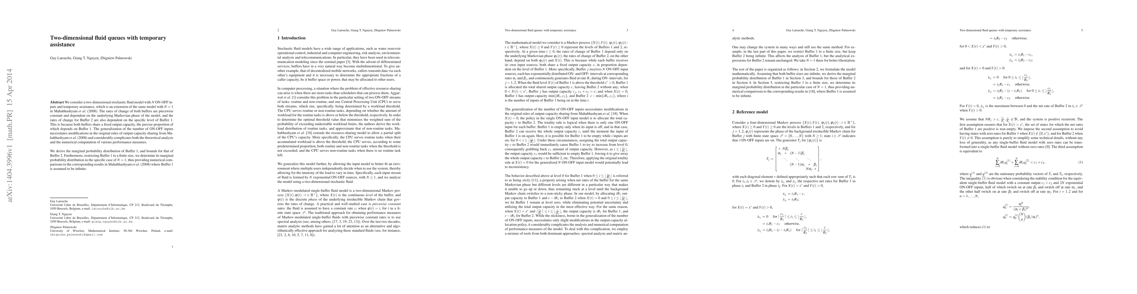 We consider a two-dimensional stochastic fluid model with $N$ ON-OFF inputs and temporary assistance, which is an extension of the same model with $N = 1$ in Mahabhashyam et al. (2008). The rates of change of both buffers are piecewise constant and dependent on the underlying Markovian phase of the model, and the rates of change for Buffer 2 are also dependent on the specific level of Buffer 1. This is because both buffers share a fixed output capacity, the precise proportion of which depends on Buffer 1. The generalization of the number of ON-OFF inputs necessitates modifications in the original rules of output-capacity sharing from Mahabhashyam et al. (2008) and considerably complicates both the theoretical analysis and the numerical computation of various performance measures.