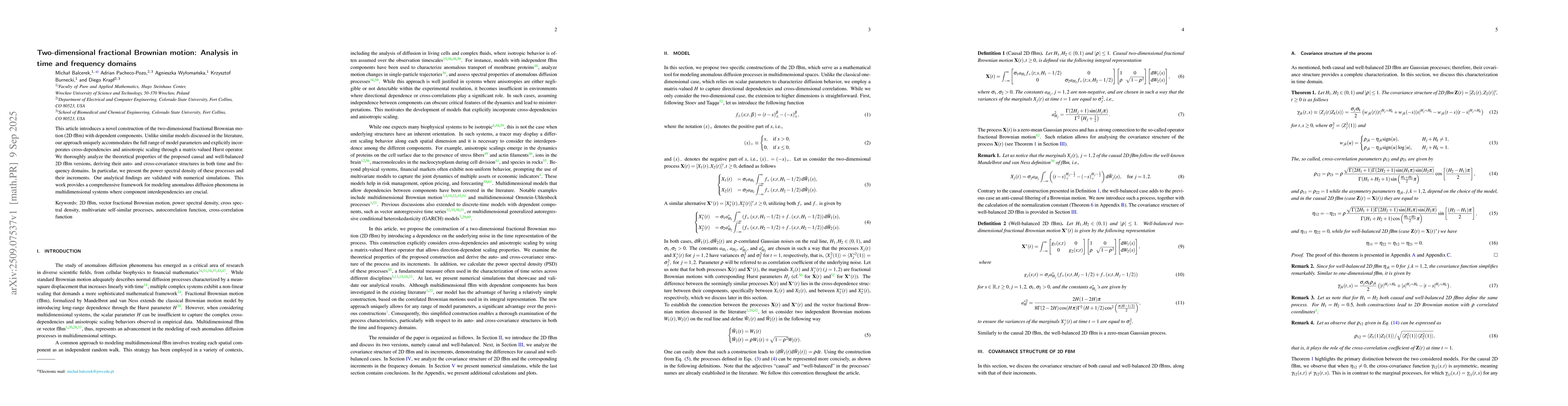 This article introduces a novel construction of the two-dimensional fractional Brownian motion (2D fBm) with dependent components. Unlike similar models discussed in the literature, our approach uniquely accommodates the full range of model parameters and explicitly incorporates cross-dependencies and anisotropic scaling through a matrix-valued Hurst operator. We thoroughly analyze the theoretical properties of the proposed causal and well-balanced 2D fBm versions, deriving their auto- and cross-covariance structures in both time and frequency domains. In particular, we present the power spectral density of these processes and their increments. Our analytical findings are validated with numerical simulations. This work provides a comprehensive framework for modeling anomalous diffusion phenomena in multidimensional systems where component interdependencies are crucial.